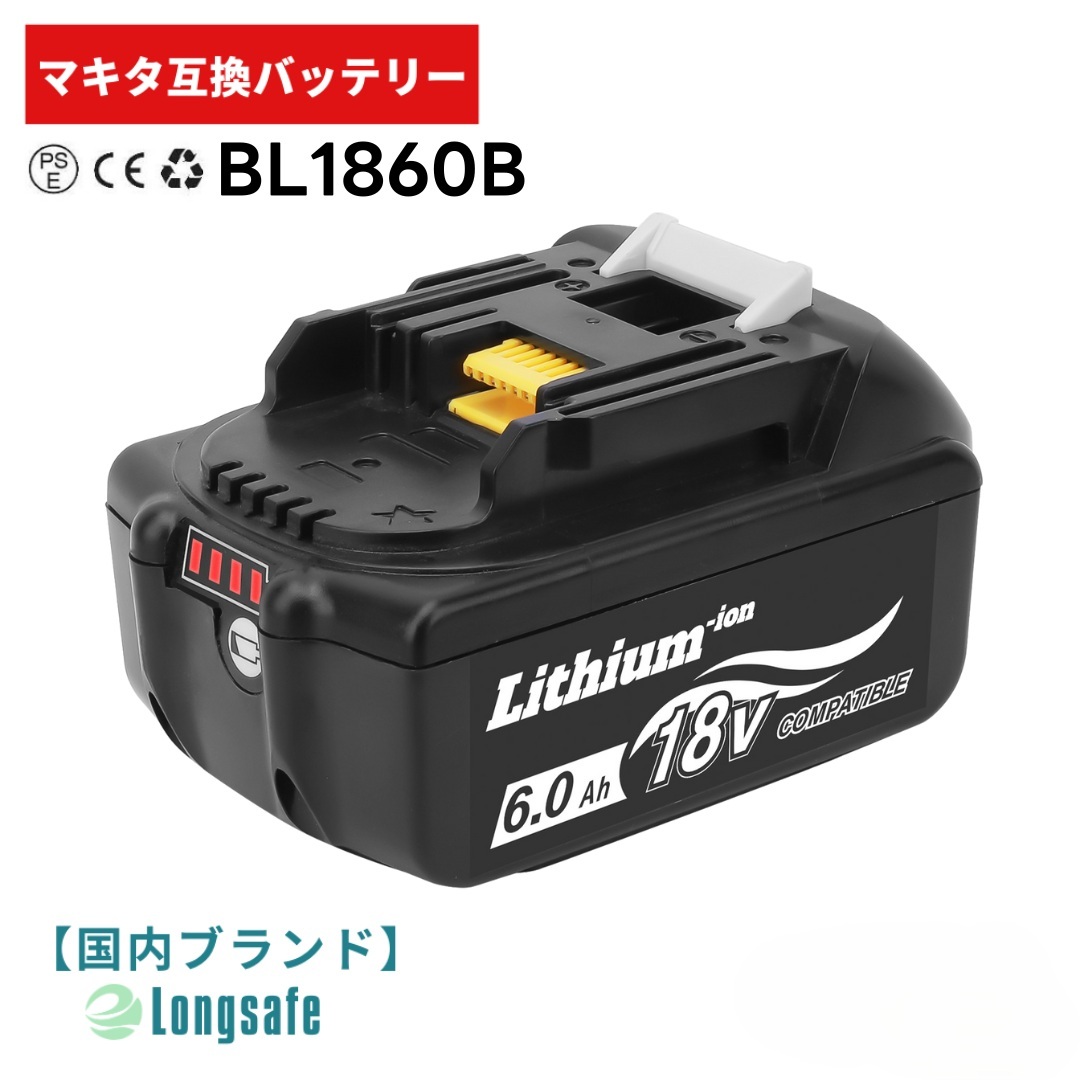 【18v bl1860b マキタ 互換バッテリー 】電圧:18V 容量:6000mAh(6.0Ah)【交換可能バッテリー】 BL1815,BL1830,BL1840,BL1850,BL1860, 194205-3,194230-4,LXT400 急速充電器DC18RCなどに対応。