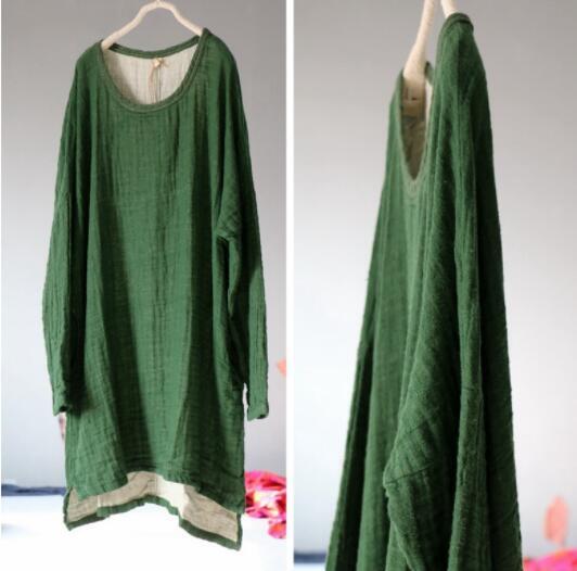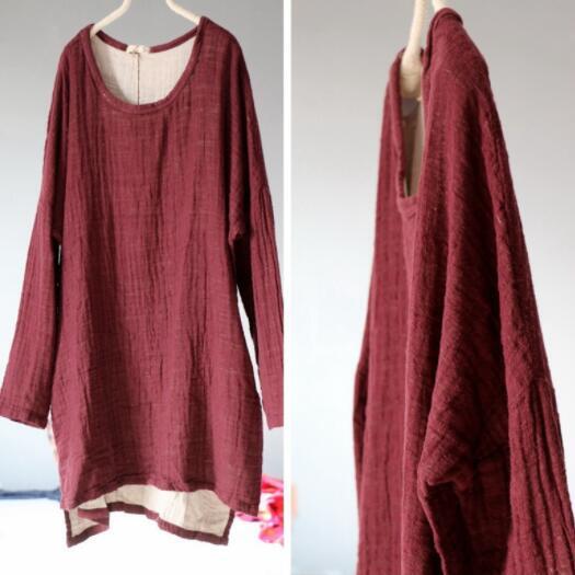 大人気高質 麻100% チュニック トップス アンティーク風 ロマンファッション ゆったり カラー