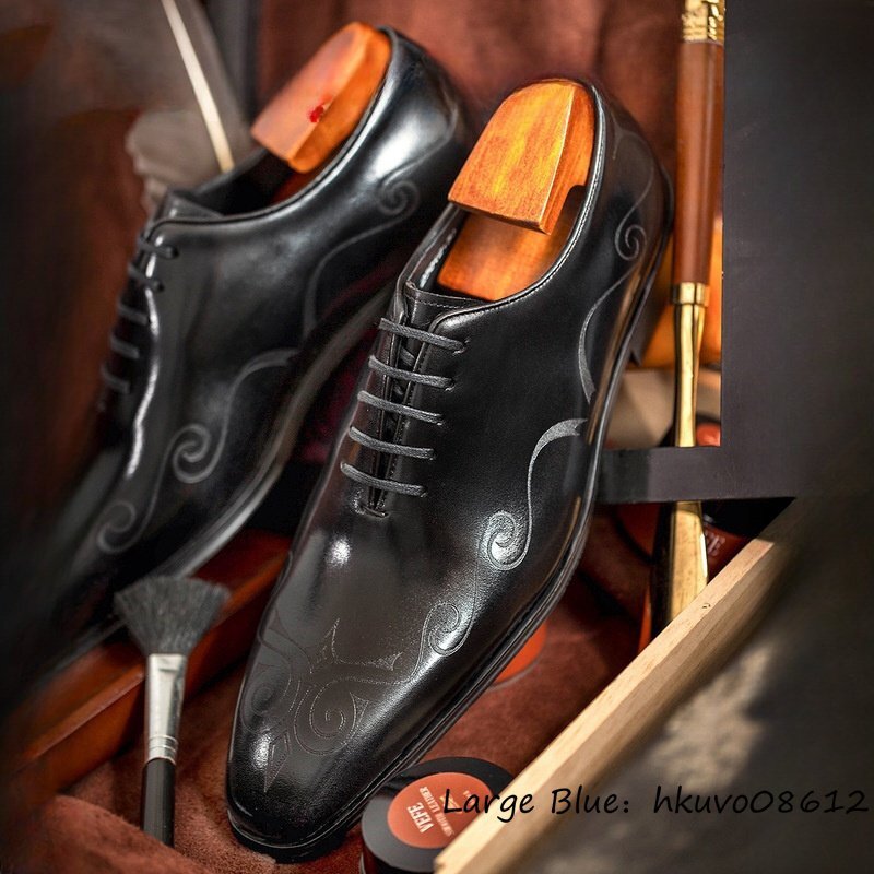 定価10万超★最高級 牛革メンズ ビジネスシューズ 本革 レザーシューズ 超希少 職人手作り 総柄紳士靴 宴会 フォーマル 革靴 黒色 24.5cm