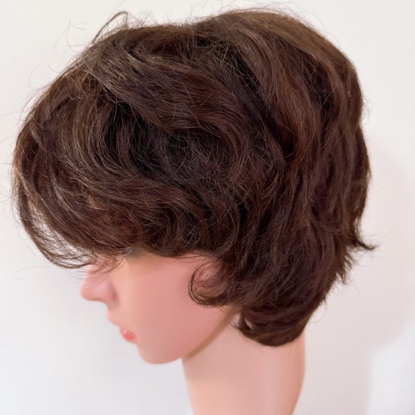 WG106-4 ②人毛100 簡単 ハンドメイドウイッグ ブラウンショート フルウイッグ おしゃれかつら 白髪隠しにも