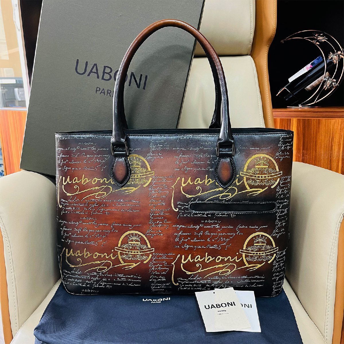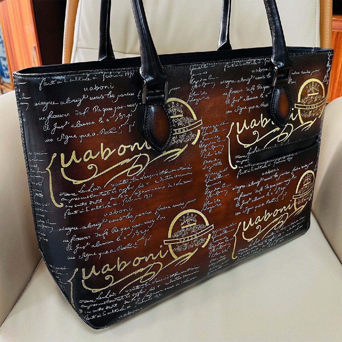 最高級 EU製 定価38万◆UABONI*ユアボニ*幻のパティーヌ*トートバッグ◆絶賛 手染 手作り 本革 レザー ビジネスバッグ 鞄 紳士用 メンズ