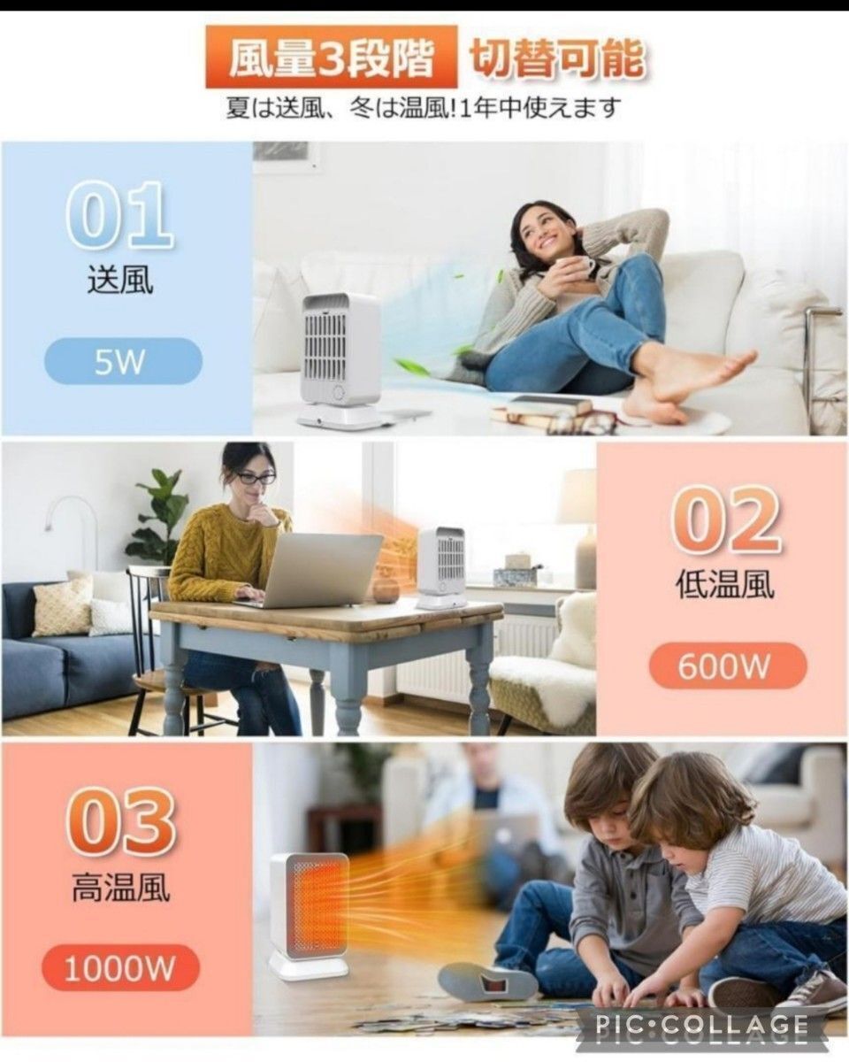 セラミックヒーター 小型 3秒速暖 3段階切替 首振り タイマー 過熱保護 静音転倒自動OFF 切りタイマー自動オフ機能 過熱保護