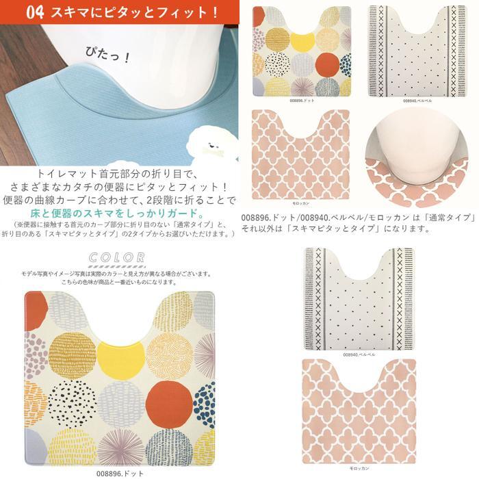 商品説明 | ・・北欧風のテキスタイルデザインで、トイレをもっとお洒落な空間に!抗菌防臭&拭けるトイレマット。 ・ぷにぷにの触感が気持ちいい!程よい厚みとクッション性で、ソフトな踏み心地に癒される…。 ・水に強く、はっ水効果のある塩ビ素材なので、飛び散り汚れもサッとひと拭き!おトイレはいつも清潔、簡単キレイ♪ ・お洗濯不要なので、家事の手間を時短できて、めんどくさいお手入れにバイバイできる!トイレマットを洗濯機で洗うことに抵抗がある方にもオススメ。 ・高い抗菌防臭効果で、雑菌の繁殖やイヤ~な臭いを防いで、快適&キレイが長持ち♪ ・ホッと一息つきたくなるような、優しい色合いの北欧風デザインをバラエティ豊富にラインナップ。お好きな柄がチョイスできる! |