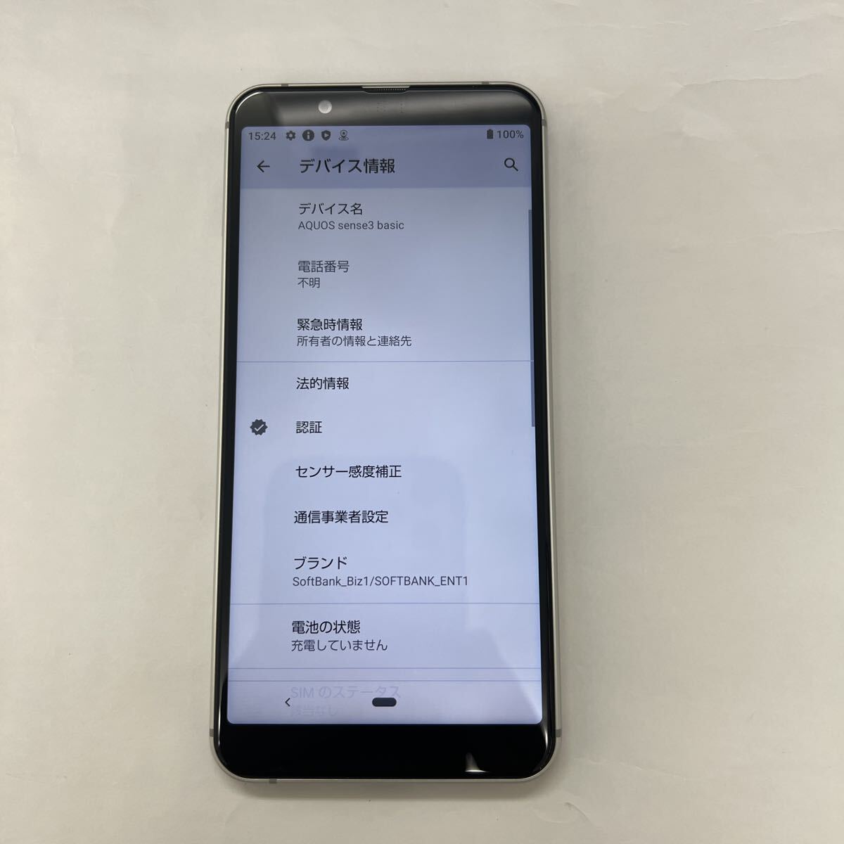 ●AQUOS sense3 basic 907SH シルバー●白ロム ソフトバンク 中古品☆本体のみ 送料無料!