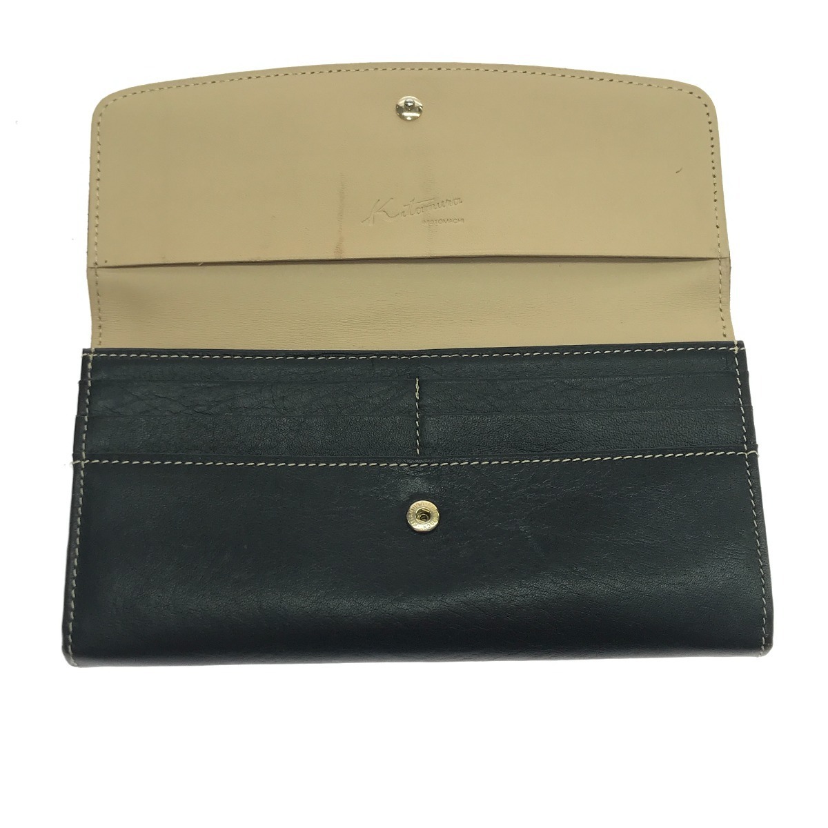 $$ Kitamura キタムラ 長財布 使用感有 ネイビー やや傷や汚れあり