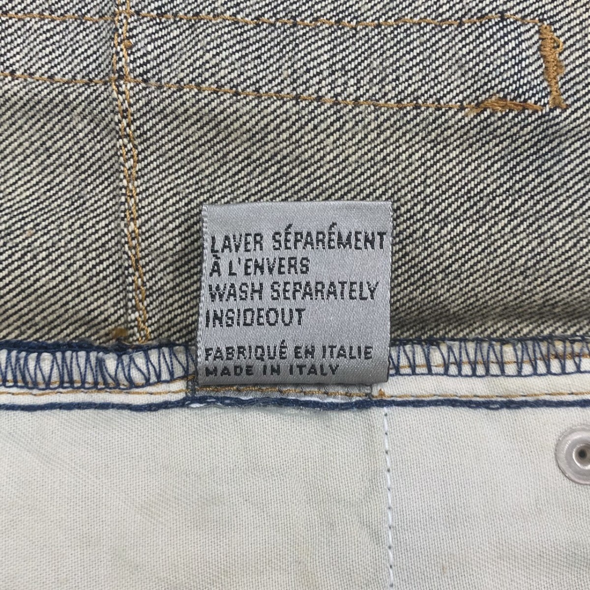 2001-2002AWシーズンから2007-2008AWシーズンを最後にディオールとの契約期間満了で退任したエディスリマン氏がデザイナー時代のアイテムで、ハンドメイドでシルバーコーティングを施したインパクトあるデニムパンツです。全体的に細身に出来ているスリムタイプのデニムとなります。