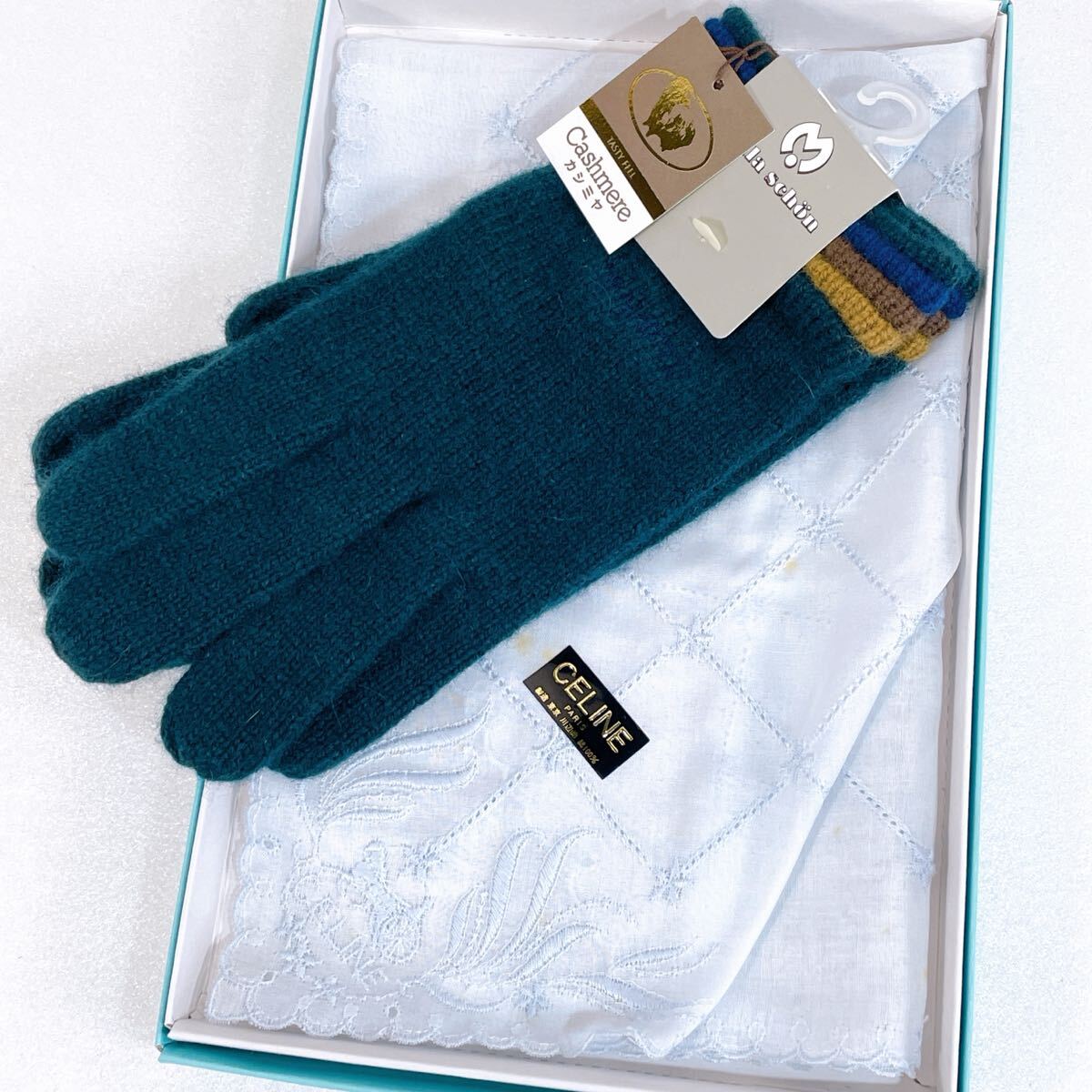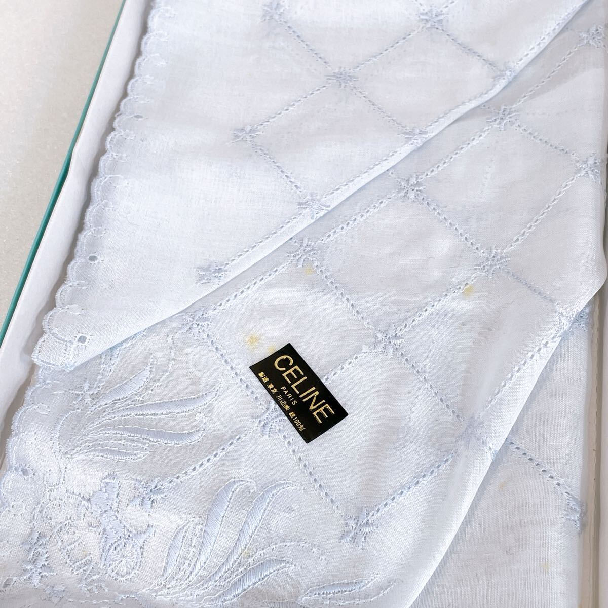 画像7:セリーヌのハンカチが紙箱に一緒に入っていました。未使用品ですが保管シミがありますのでおまけ程度にお考え下さい。