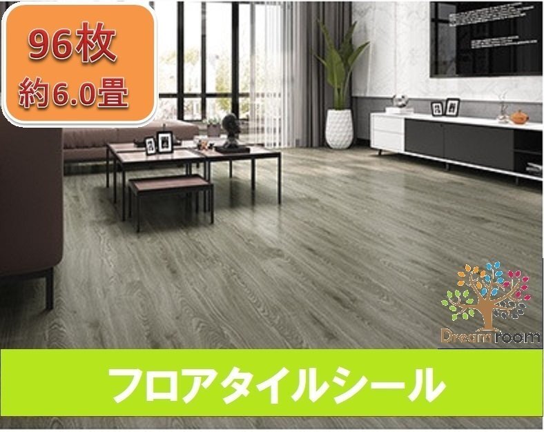 【H081-96p】リアルな木目 フロアタイル 約6.0畳 96枚セット 木目 フローリング 貼るだけ 接着剤不要 床材 傷防止 リフォーム DIY 工事材料