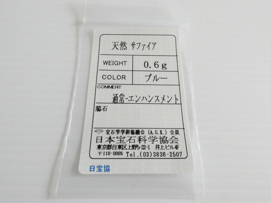 日本宝石科学協会のソーティングが付きますので間違いありません。