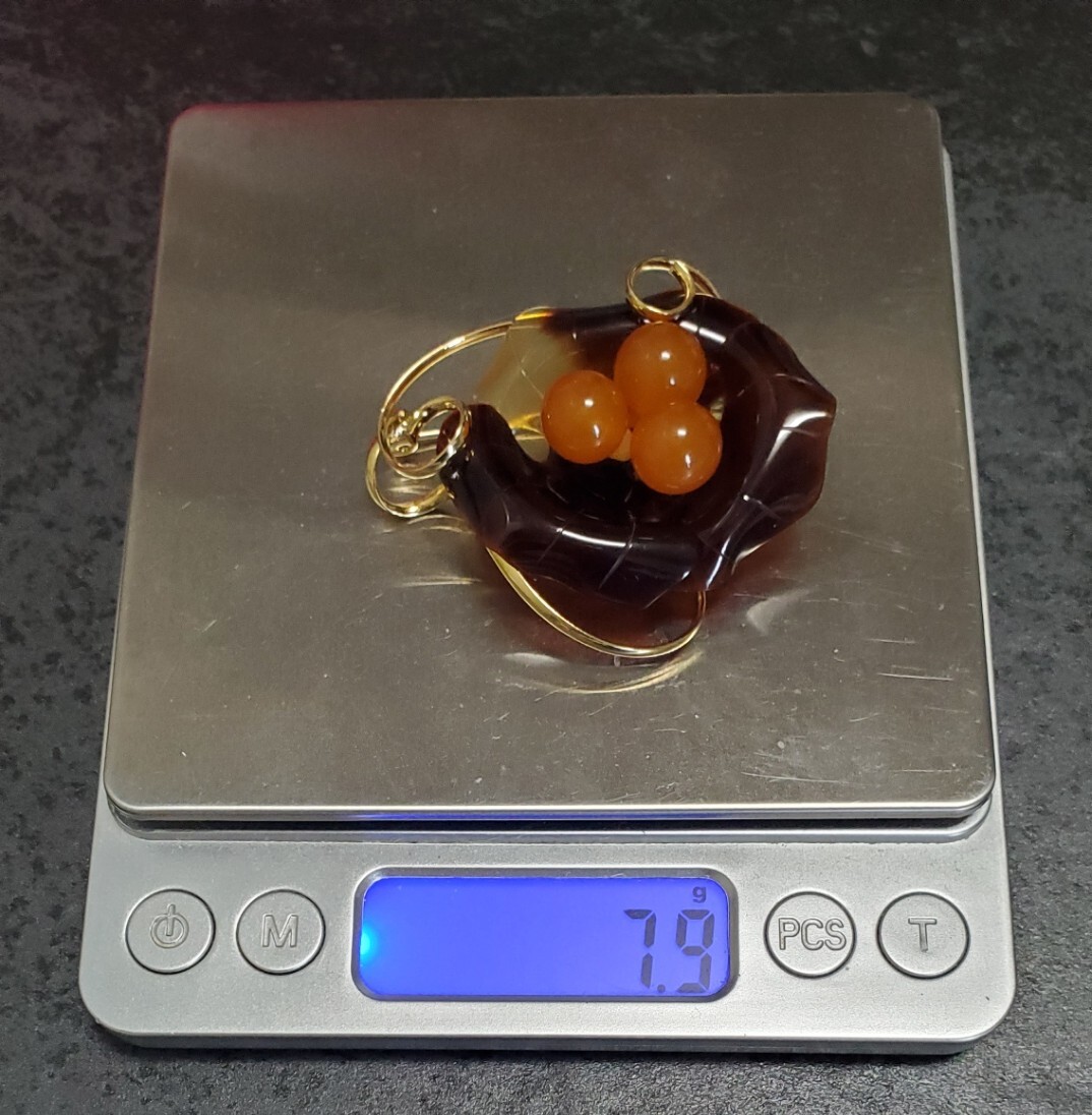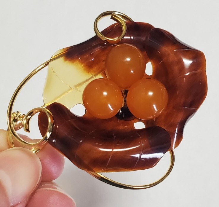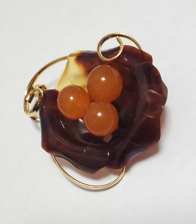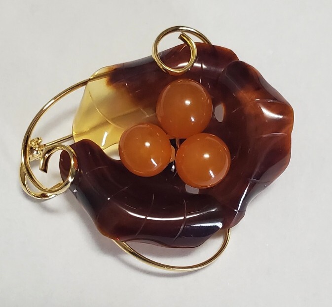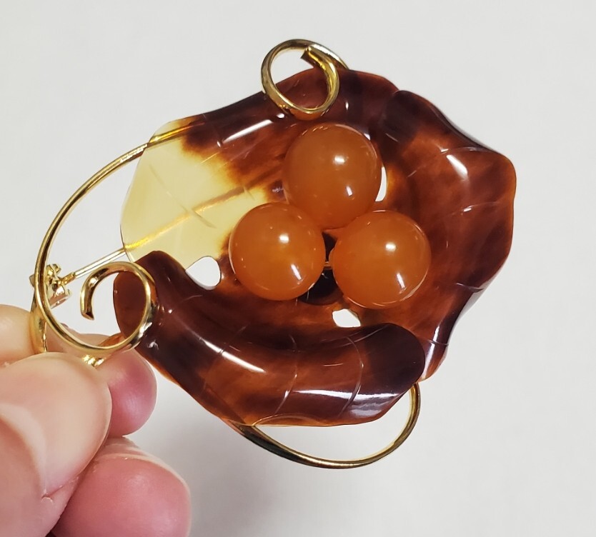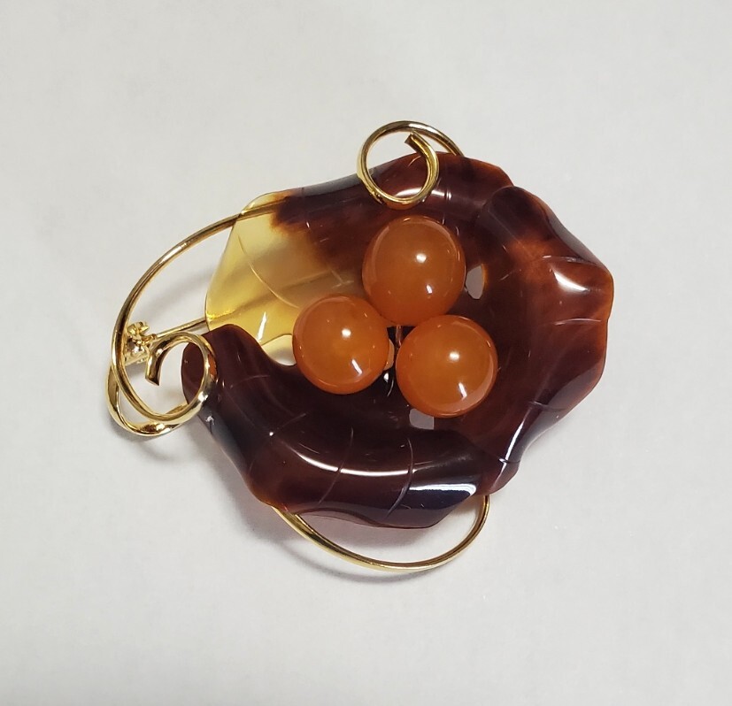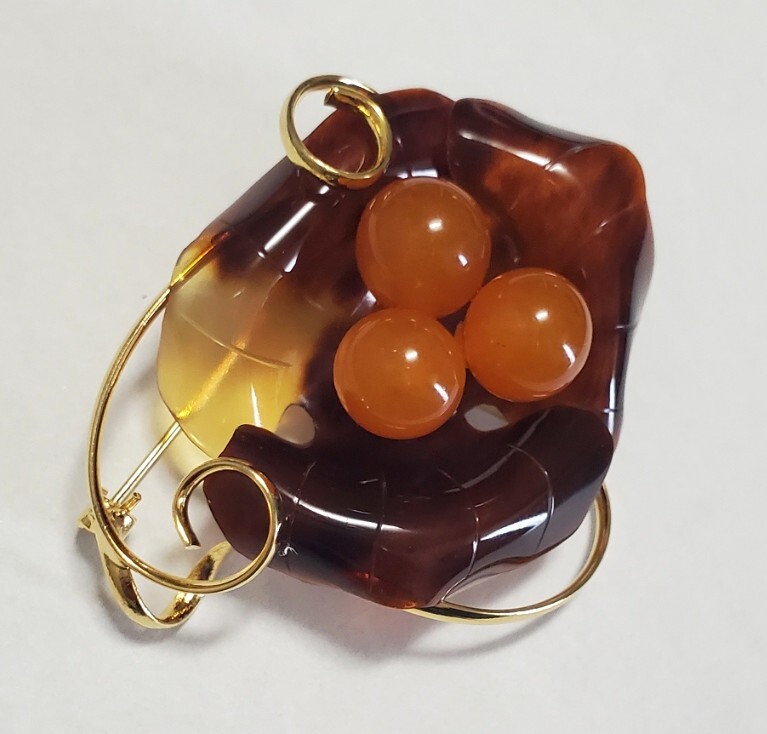 鼈甲  べっ甲  琥珀 コハク ブローチ   レディース  アクセサリー  7,9g  美品