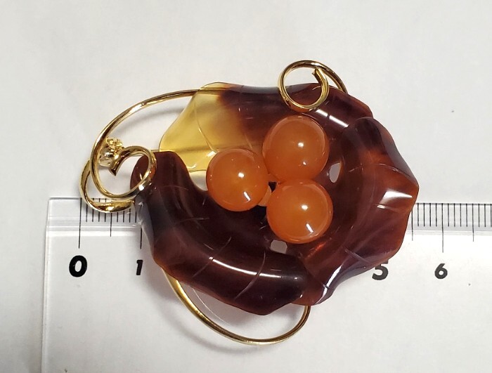鼈甲 べっ甲 琥珀 コハク ブローチ レディース アクセサリー 7,9g 美品
