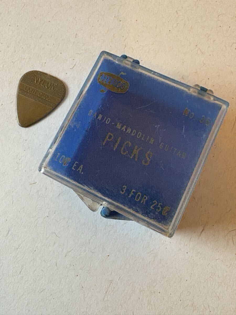 こちらは再販物ではなく、約20年前に購入したヴィンテージ物です。UFO期のマイケルシェンカーのギタートーンは、このPICKが無いと再現不可能なのでコレクションしておりました。ほぼ使用していませんので、ギザギザ部分がすり減っているようなことはないかと思います。また、昔のHERCOのPICKケースもレアなお品だと思います。
