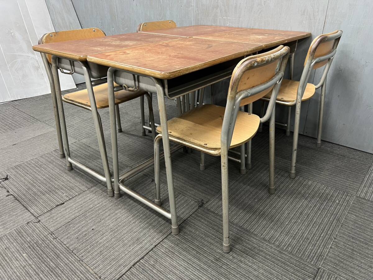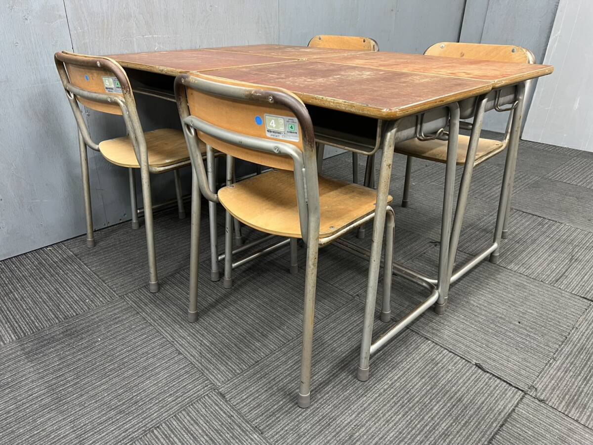 ◆管445◆自社便対応地域あり◆ホウトク製◆学童机4台 学童椅子4脚◆4組セット◆JIS規格4号◆学校 学習塾等 中学年