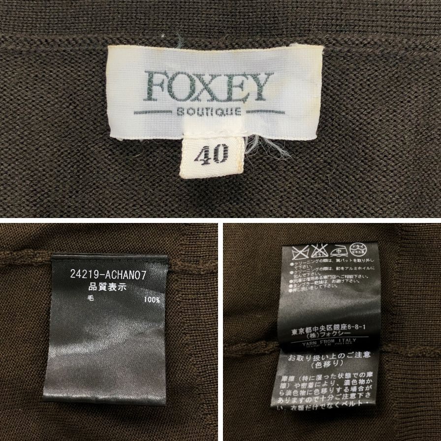 中古◆カーディガン フォクシー カーディガン ウール ニット 24219 ブラウン レディース サイズ40 FOXEY 【AFB6】