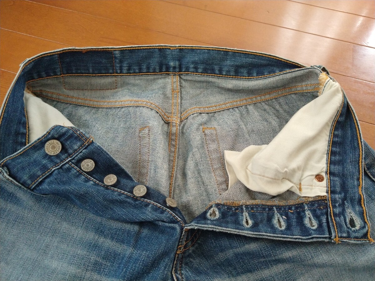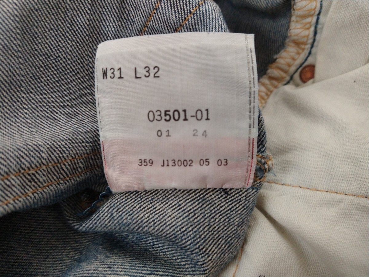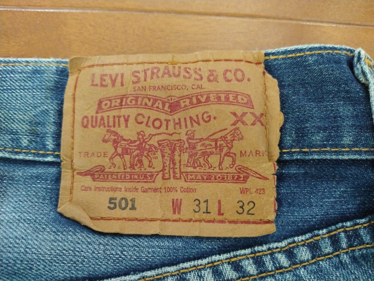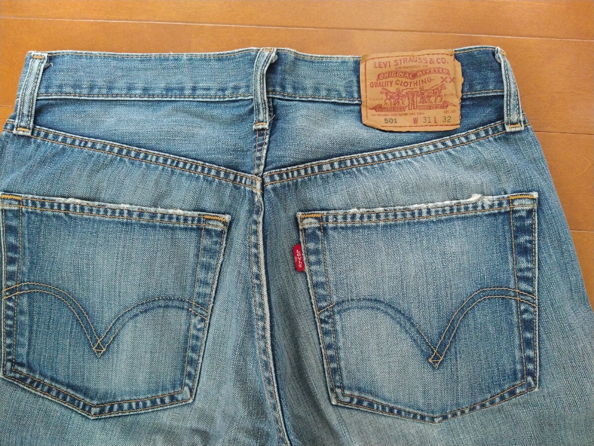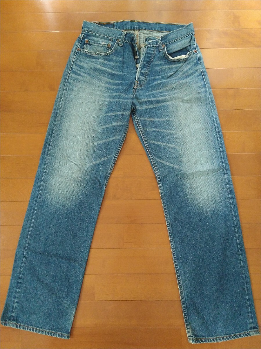 Levi's 501のデニムパンツです。全体的に色落ちや使用感が見られます。フロントポケット部分等。にダメージがあります。ヴィンテージ感がお好きな方におすすめです。