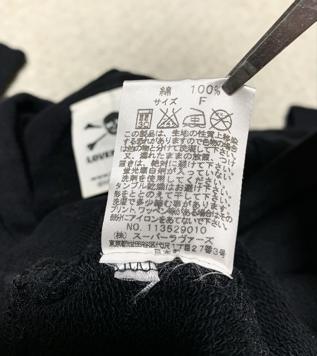 SUPER LOVERS(スーパーラヴァーズ).プルオーバー スウェットパーカー(黒)、サイズF(ユニセックス)です。