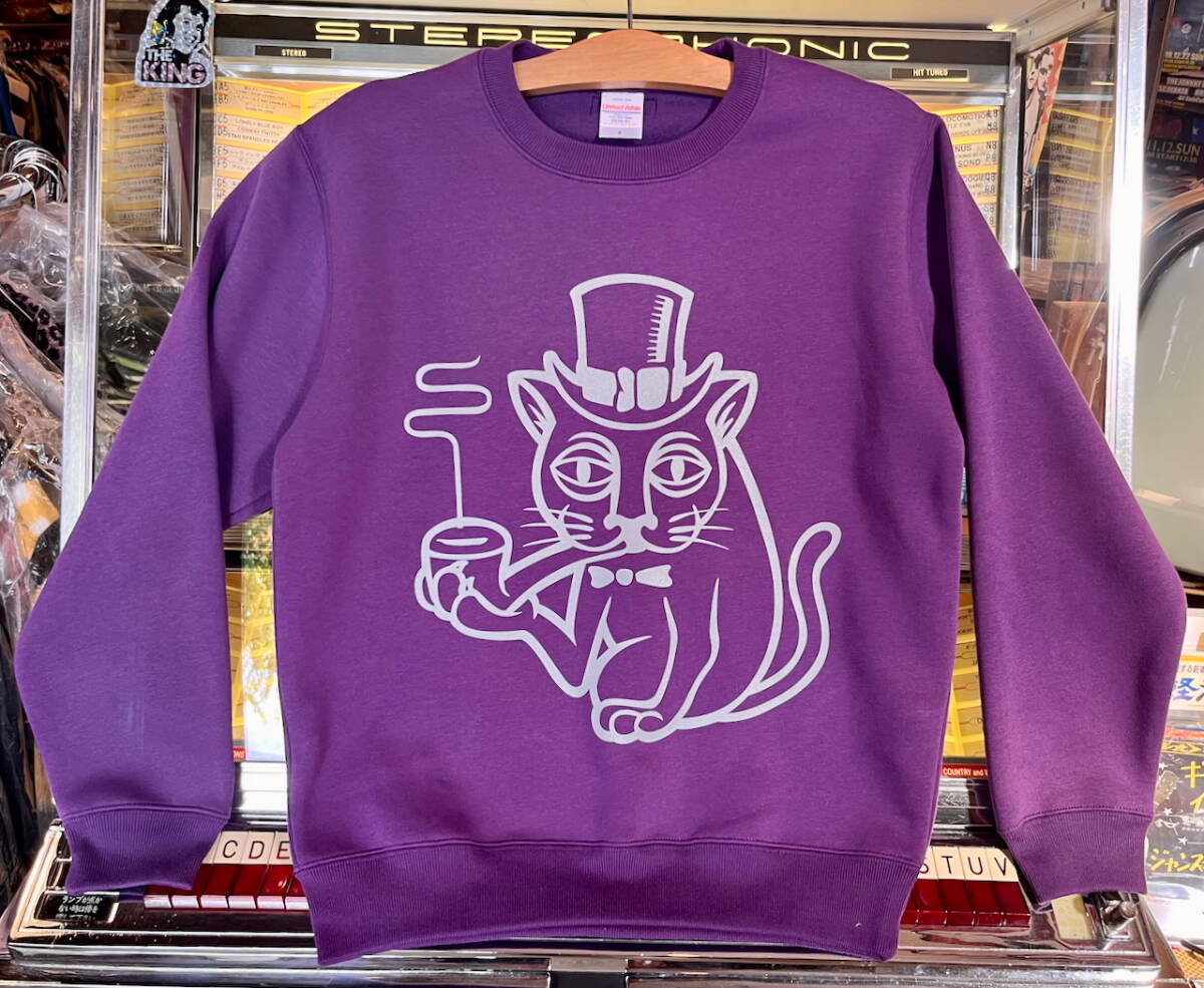 S紫パープルPurple丸首裏起毛CrewNeckSweatスウェットクルーネックHapStoreハップキャット50sロカビリーWideRangeワイドレンジ5928