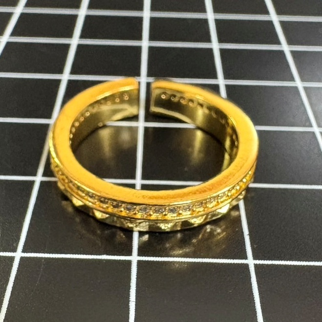 A938 匿名配送 指輪 レディース リング ゴールド 菱格紋 パヴェリング フリーサイズ サイズ調節可能 重ね付け 軽奢 高級感