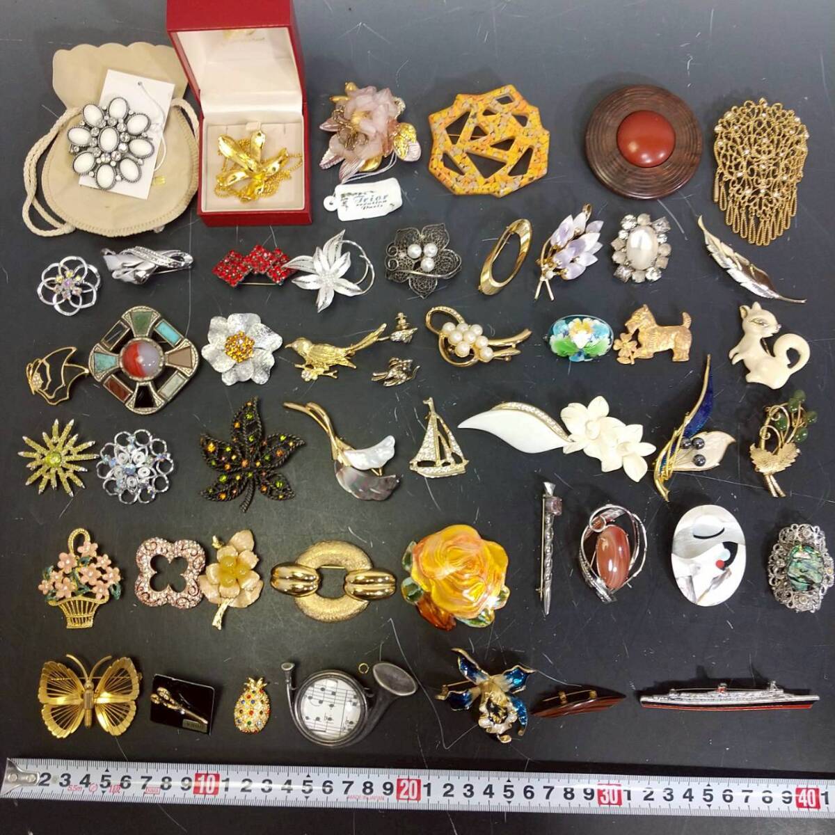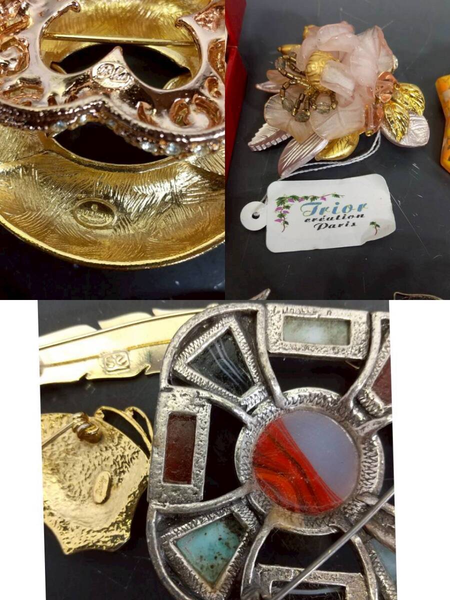 S121 ブローチ 豪華 50点 大量 セット ブランド GIVENCHY 銀 SILVER 刻印 翡翠 パール ゴールドカラー 等 まとめ売り アクセサリー