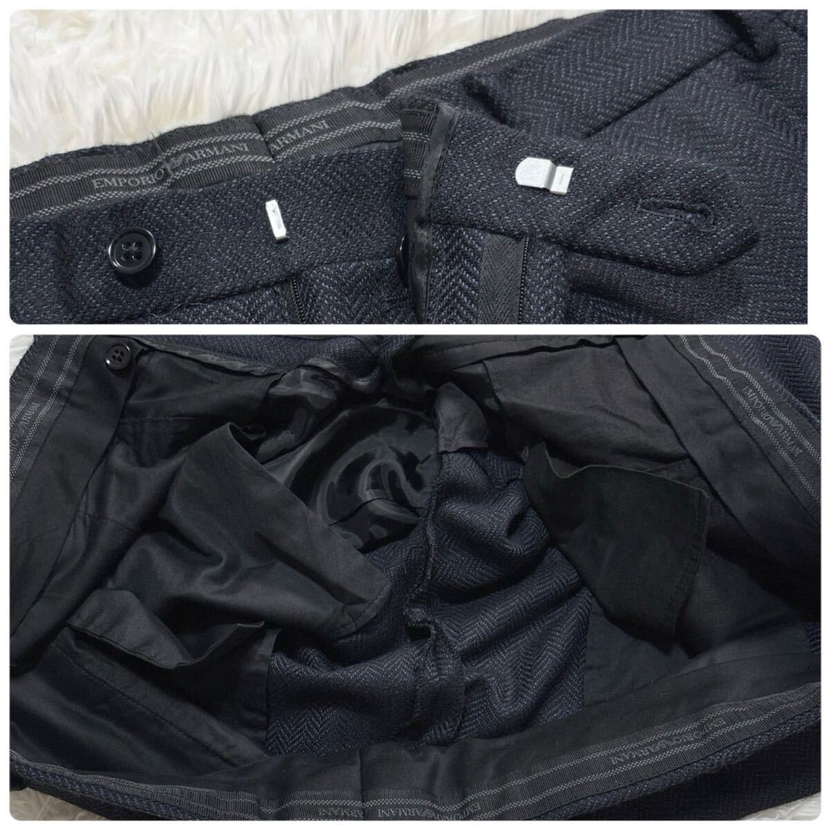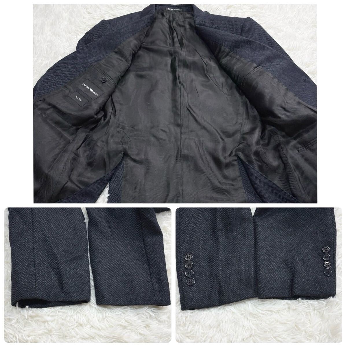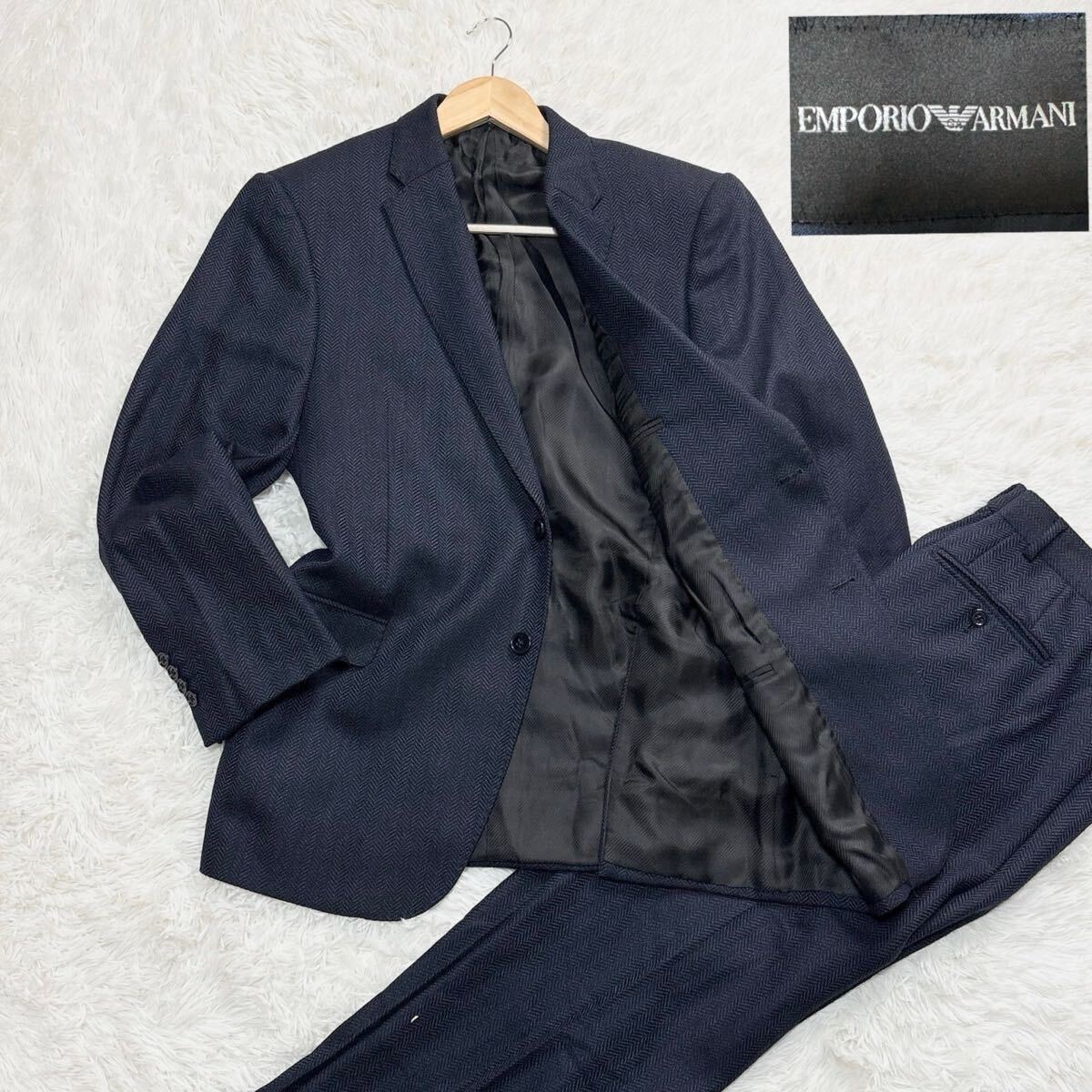 美品/XXL!!●エンポリオアルマーニ 近年モデル セットアップ ヘリンボーン EMPORIO ARMANI 3L 2XL 52 ジャケット パンツ メンズ ビジネス