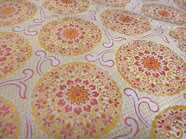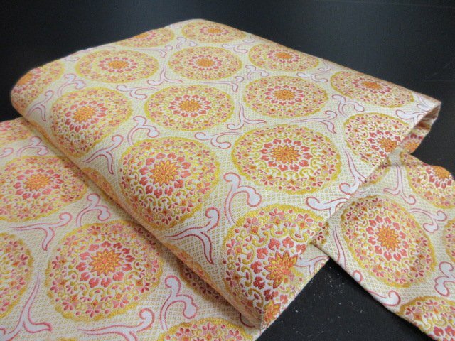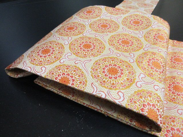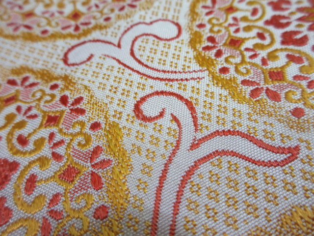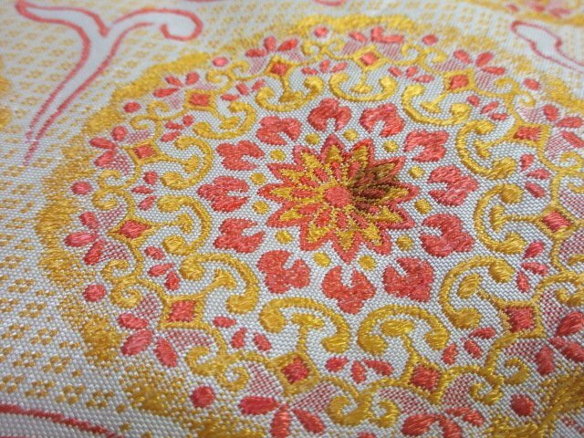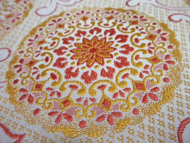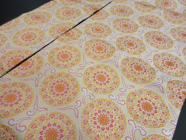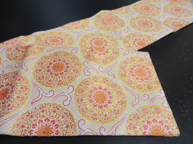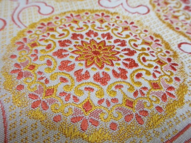 商品名 | 1円 中古 名古屋帯 正絹 和装 和服 花絵皿 宝相華 唐草 全通柄 お洒落 九寸帯 長さ329cm【夢職】★ |