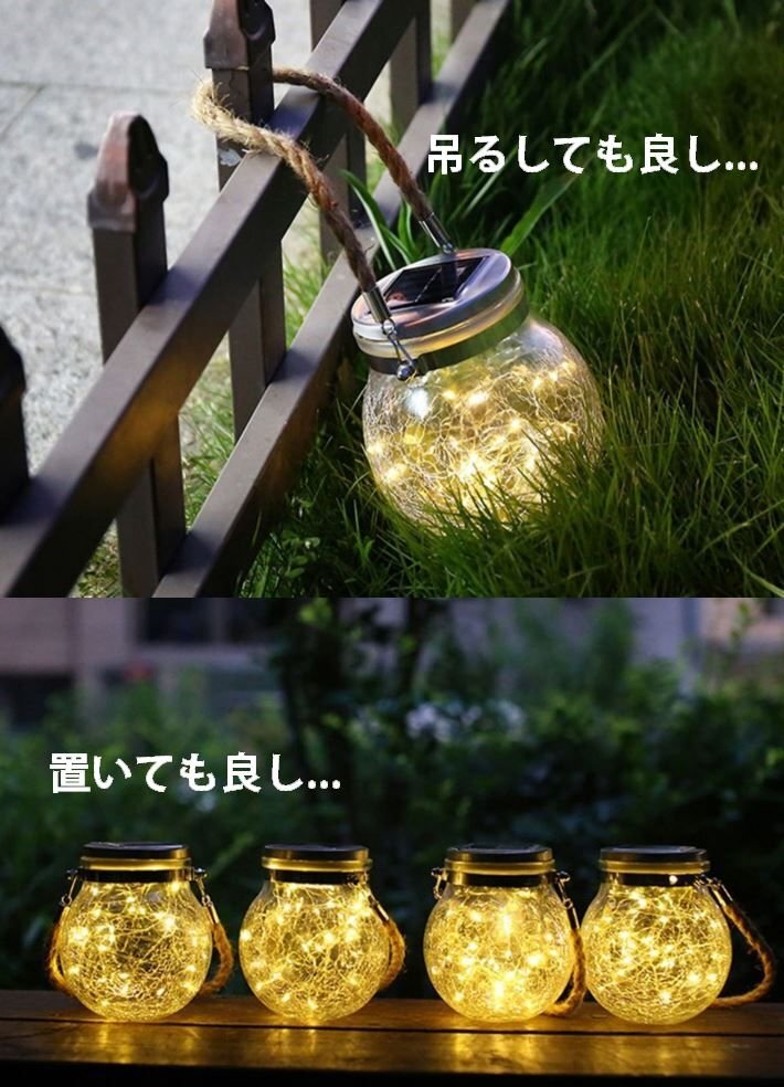 超オシャレな癒し LED ソーラーライト 屋外 防水 置き型 吊り下げ ランタン 卓上 スタンド ガーデニング 7987563 暖色 新品 1円 スタート