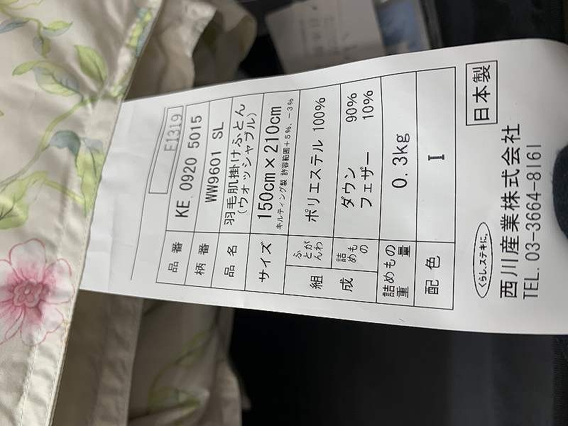 商品名西川 羽毛肌掛け布団 シングル ダウン90% ウォッシャブル 150×210cm