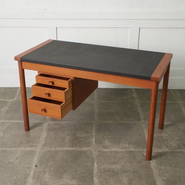 美しいチーク材とレザートップ天板の組み合わせが目を惹く片袖デスク。日本の住空間にマッチした使い勝手の良いスケール感で、シンプルゆえに品質とプロポーションの良さが際立つクオリティーの高いお品です。?