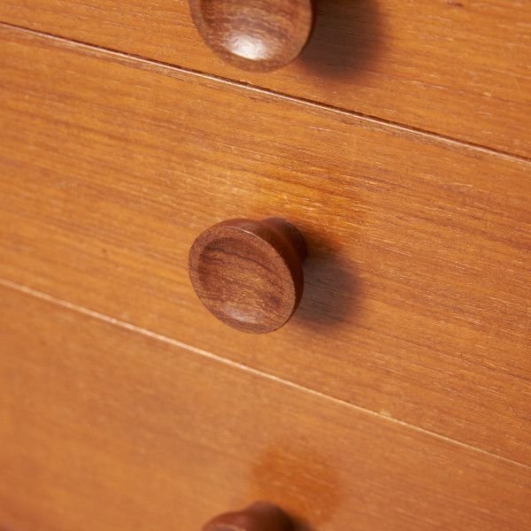 タイ北部からミャンマー産のチーク材は厳しい環境の中、ゆっくりと油分を蓄えながら育ち、鉄の防腐食作用、耐水、防腐、防虫作用が強く、収縮率が少なく木肌も詰まって美しい為、ブラジリアンローズ、ホンジュラスマホガニーと並ぶ世界三大銘木のひとつとして珍重されてきました。この地域のチーク材は「巻き枯らし」と呼ばれる3~5年をかけて立木のまま水抜きをする特殊な伐採手順を踏んでおり非常に素直な加工に適した木質となっています。また、この手順から(ドライチーク)とも呼ばれています。北欧家具や高級家具の素材として使われてきたチーク材ですが、現在は個体数が激減し極めて稀少価値の高い存在となっております。現在流通するチーク材は人工栽培されたインドネシア、ジャワ産の「インドネシアチーク」が主流になっていますが、成長がはやく若木のうちに伐採されるため、木目の美しさや耐久性に劣ります。