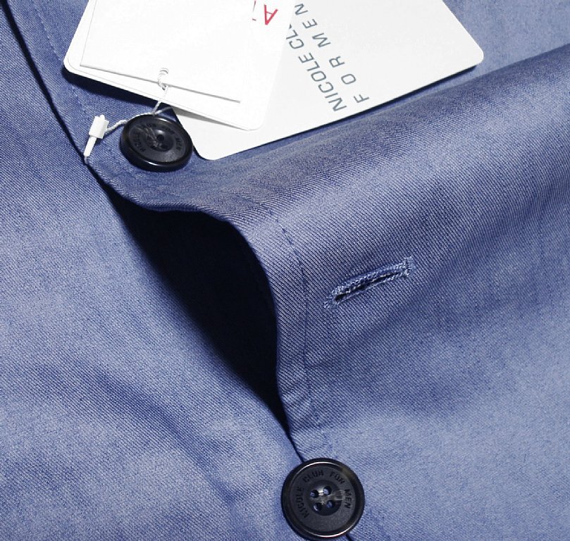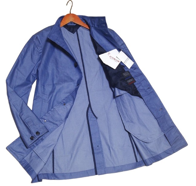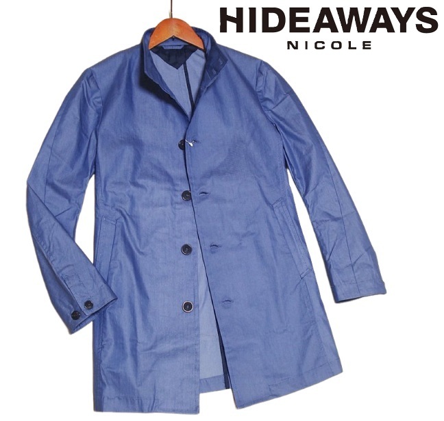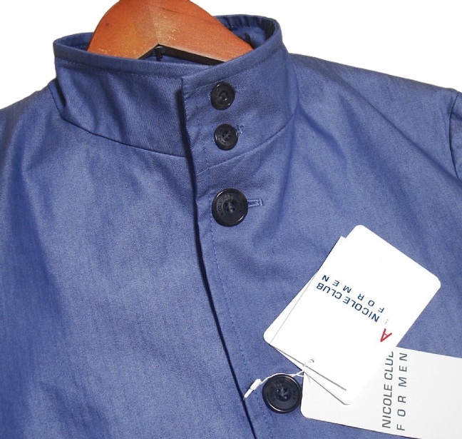 新品!! ニコルクラブフォーメン 光沢 ツイル スタンドカラー コート サックス 46 (M) ☆ NICOLE CLUB FOR MEN スプリング 定価2.6万 青★