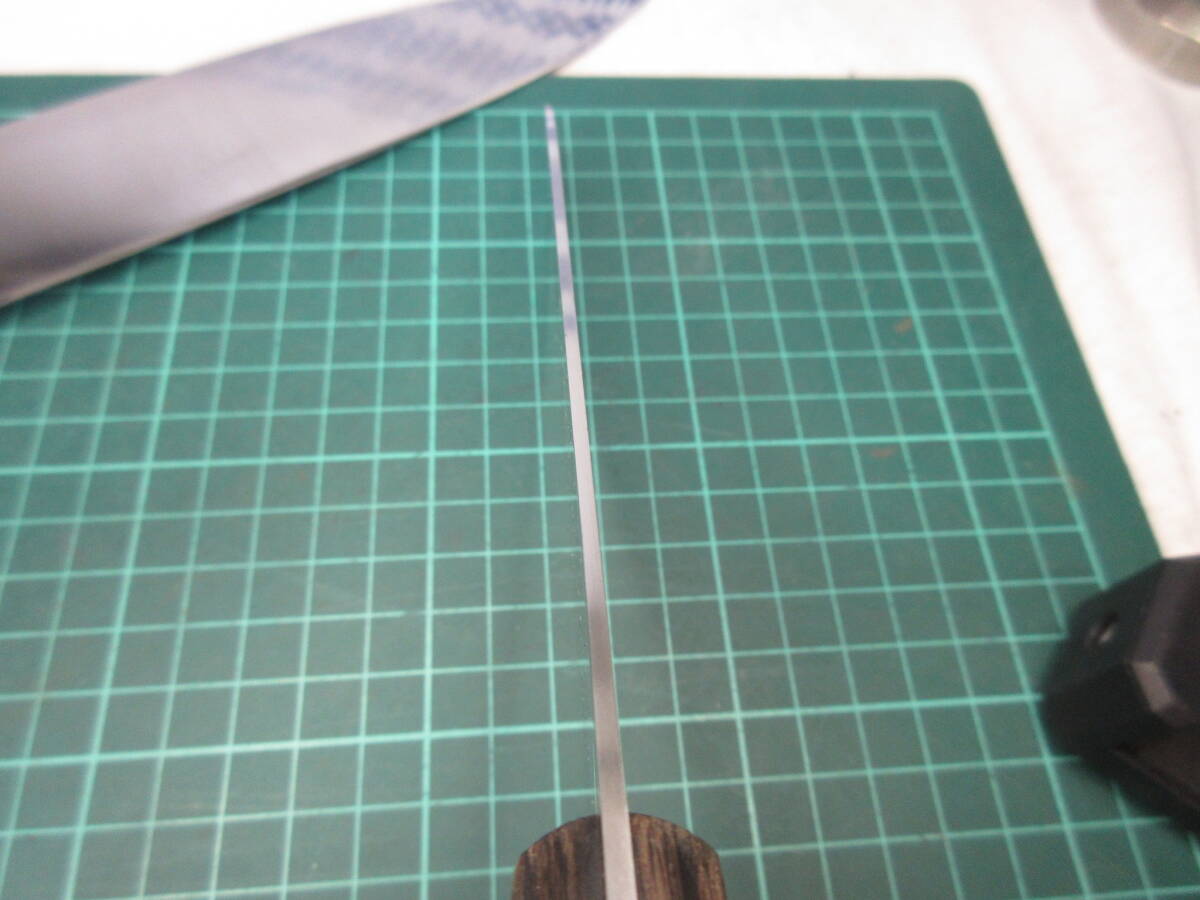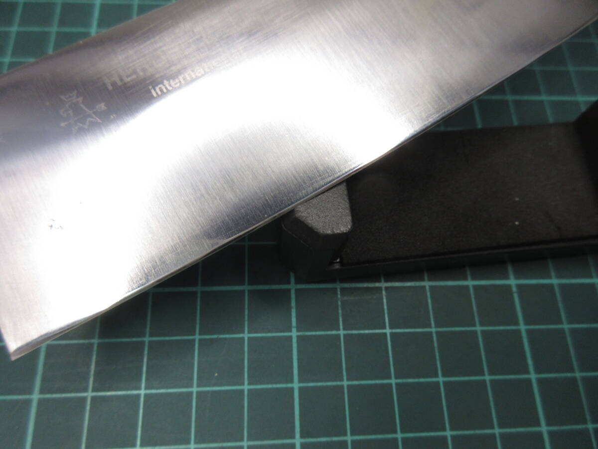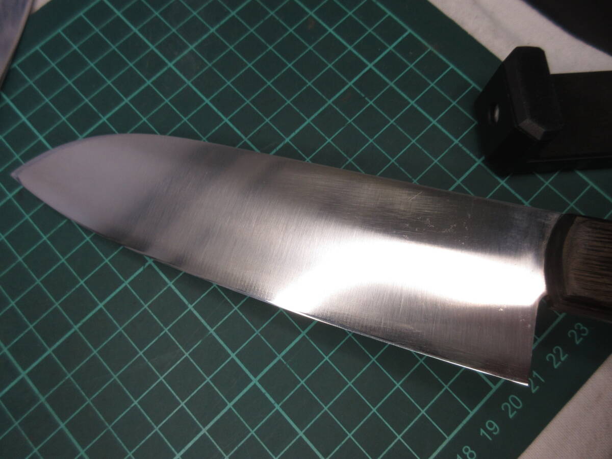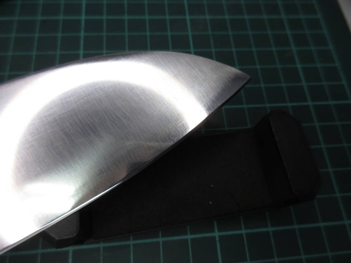 | 「受取連絡」が出来ない方の入札はお断りします。 こちらから評価を入れることはありません。 ■■■■■■■■■■■■■■■■■■■■■■■■■■■■■■■■■ 三徳包丁17cm 牛刀20cm 最後の写真は磨き前です。銘は消えました。 歪みや反り、落としきれない錆があります。全体的に使用感があります。 包丁のみの出品です、付属品はありません。 ■■■■■■■■■■■■■■■■■■■■■■■■■■■■■■■■■ 発送はレターパックです。(補償はありませんのでご注意ください。) 送料を抑えたい方はライト(430円)を選択してください。(ただし厚さ制限のため簡易包装です、新聞紙で包む程度ですので輸送時の衝撃で包丁の歪みや破損のリスクがありますのでご理解ください。) プラス(600円)は衝撃対策で厚めの梱包をします。(複数同梱の場合は包装が簡易になります。) 刃渡り21cmまではレターパックで発送できると思いますが長い刃は着払いゆうパックになります。 小振りな包丁なら3本くらいまでライトで同梱できます。プラスなら5本までは入ると思いますが21cm以上の包丁が絡むと本数が限られます。 以下は定型文です。 洋包丁は両刃、和包丁は片刃を前提に出品しています。 (タイトルと個別情報に刃付けの記載が無ければ上記のとおりです) 他の出品物と同梱できます。(システム上、着払いとのまとめ依頼ができません。落札後に同梱希望のメッセージを 頂ければ対応します。) 送料と材質についての質問には返答しません。 包丁につきましては全てジャンクとし、ノークレームノーリターンでお願いします。 出品からお品物が届くまでに時間が掛かった場合、鋼などの材質ですと変色や錆などの変質がある場合がございますのでご了承ください。 錆の酷い包丁は再生研磨していますが、あくまで素人仕事です。電動工具を用いての仕上げです。 削る、磨くは出来ますが歪みの修正は出来ません。中古品ですので歪みがある前提で入札してください。 磨きにより錆に強くなるメリットがありますが切った食材が張り付くデメリットがあります。 切れ味が悪いや、思ったより汚いなどのクレームはご遠慮ください。 触れば怪我をするほどの最低限の刃付けはしてあります、開封時にご注意ください。 肉眼での検品ですので微細な傷や欠けを見落としている可能性もありますので写真を参照してください。 現状維持のために防錆に椿油を塗布していることがありますので写真に不自然な艶が写っている時があります、ご了承ください。 (鋼の洋包丁の場合は中子にも塗布するために柄にも油が散布しています。ご使用前に洗浄してください。) 中子やリベットの錆を落とす為に柄ごと研磨する場合がありますので、柄に研磨痕が残っている時があります。 柄の仕上げに軽く蝋引きしています。 片刃の場合、研ぎですが砥石傷が付くのを嫌ってベタ研ぎはせず、峰をわずかに浮かして仕上げています。(綺麗な裏押しの和包丁はベタ研ぎです) 10対0ではなく9対1位の感覚です、完璧な片刃をお求めの方は入札をご遠慮ください。 (和包丁は片刃前提です、洋包丁が片刃の場合にはタイトルと個別情報に片刃と記載してあります) 有効利用、再生利用できる方の入札をおまちしています。 写真で判断いただき、商品説明を理解出来る方のみ入札をお願いします。 クリーニングなどはせず、写真のままお送りします。 専門知識が乏しい為、質問に答えられない時があります。 ブランド品の真偽については不明とさせて頂きます。 素人による中古出品です、すり替え防止の為にもノークレームノーリターンでお願いします。 入金を確認しました時点でお取り置き終了と判断し発送準備にはいります。 同梱発送、お取り置きを希望の方は入金前に連絡頂くと助かります。 落札後、48時間以内の初回連絡、五日以内の入金が確認出来ません場合は落札者様都合のキャンセルとさせて頂きます。 その場合落札者様に非常に悪い評価とブラックリストへの登録を同時に行いますのでご了承ください。 (以後こちらのオークションに入札が出来なくなります) #お取引に不安を感じる評価の方は削除させて頂く事があります。 #総合評価が高くても直近に悪い評価がある方も削除致します。 #いたずら入札を防ぐ為、1万円以上の入札額時の場合は新規の方の入札をお断りします。 #(どうしても入札したい時は質問欄より入札意思をお伝えください。) *評価を入れて頂くと反射的にお返しする形を取っています、不要の方は評価を入れないで下さい。 *こちらから評価をお付けすることはありません、不要の方は「受取連絡」で終了して下さい。 自己紹介欄もあわせてお読みください。 | ||