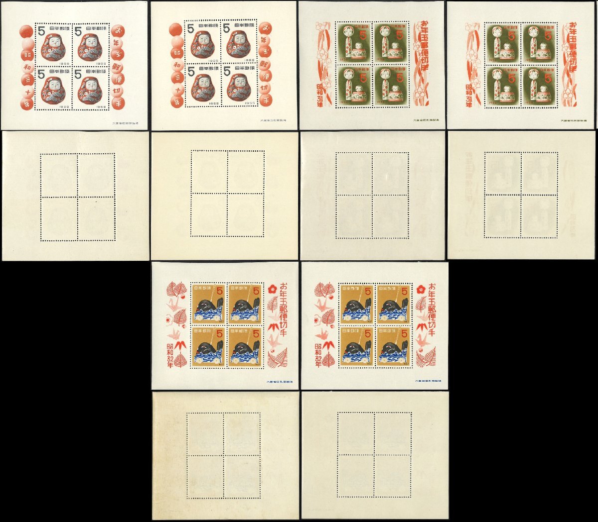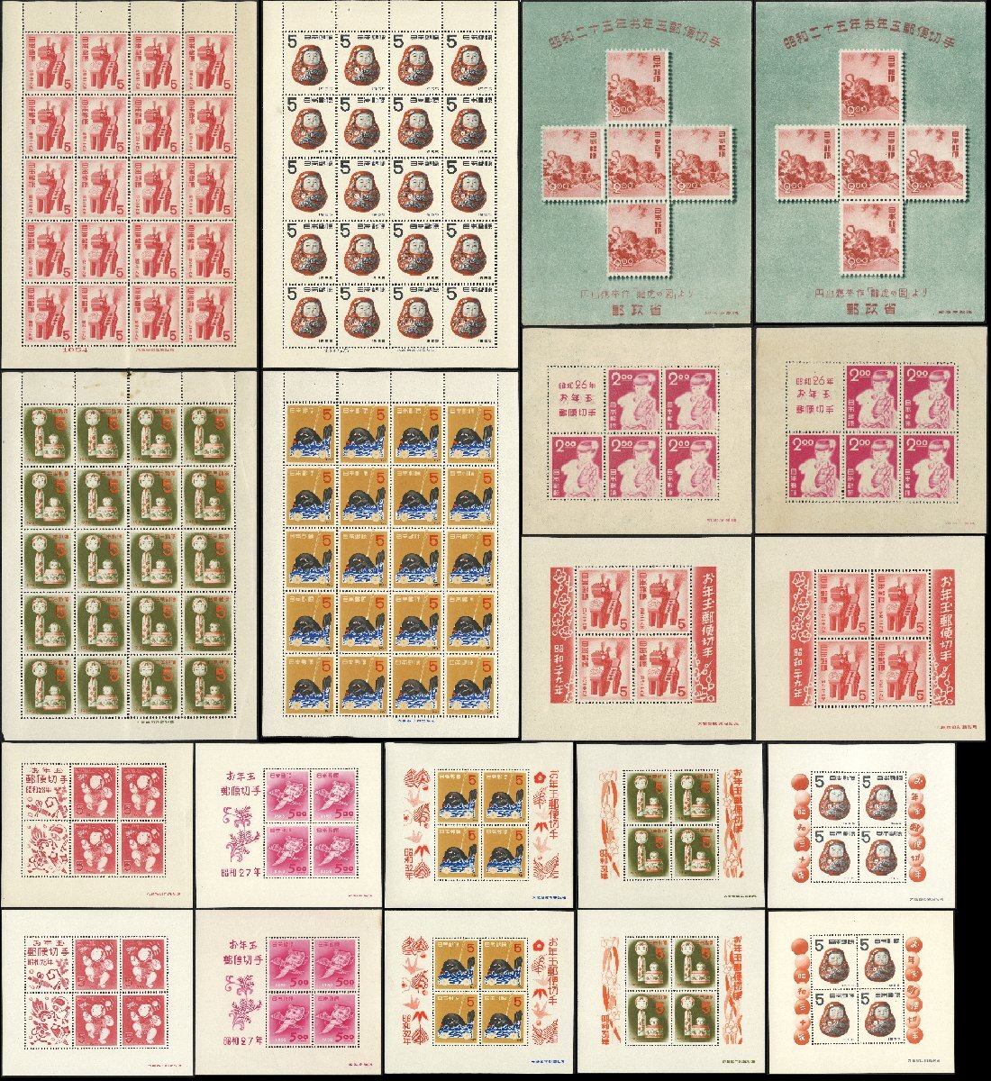プレミア切手 未使用 年賀切手 S/Sシート他 昭和25年(とら)~昭和32年(だんじり) 1950年-1956年 合計20点◆おたからや【D-C03117】