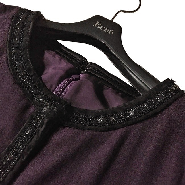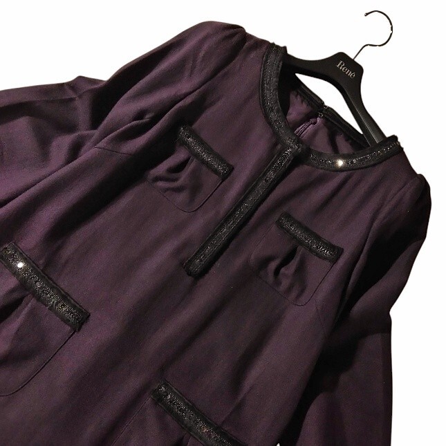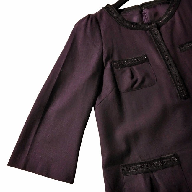 首元やポケットにスパンコール装飾がデザインされたワンピースです