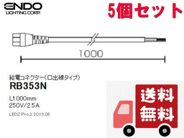 | ◆送料無料◆遠藤照明◆ENDO 給電コネクター(口出し線タイプ) RB353N 5個セット◆新品・在庫品 管BG-2 | ||