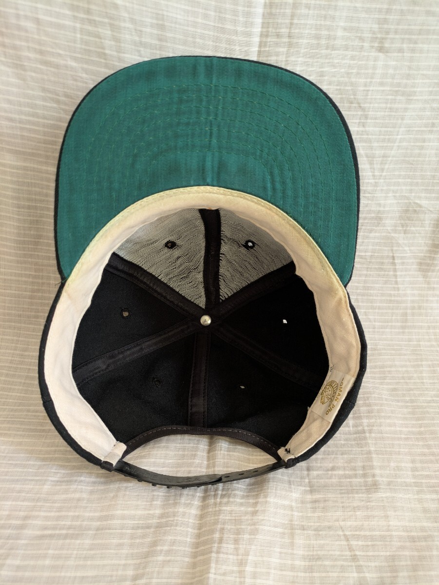 USA製でクーパーズタウンベース。MADE IN USA刻印入のスナップバック。つば裏グリーンのオールドスクールスタイル。今なおお探しの方が多い激レアキャップ。