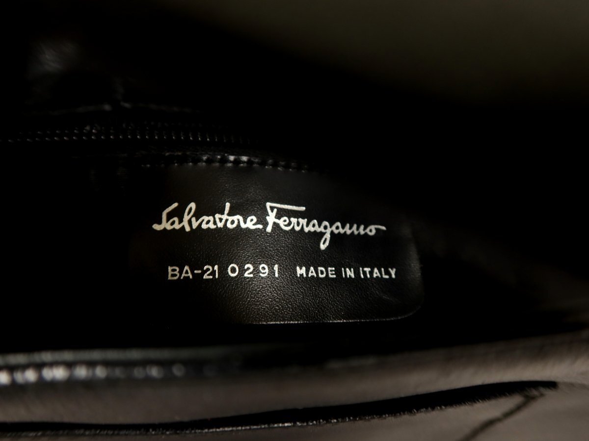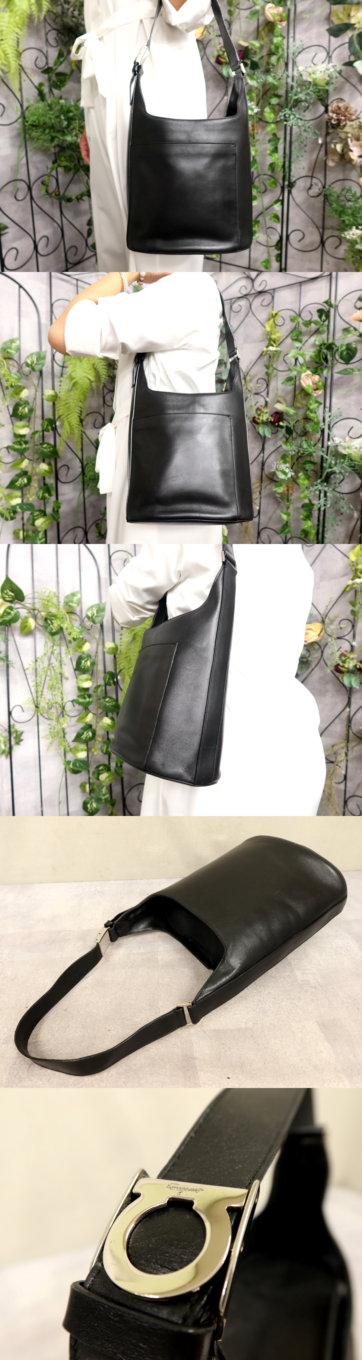 ●超美品●Salvatore Ferragamo フェラガモ●ガンチーニ●カーフ レザー 本革●ショルダー バッグ●黒●シルバー金具●肩掛け●Js60716