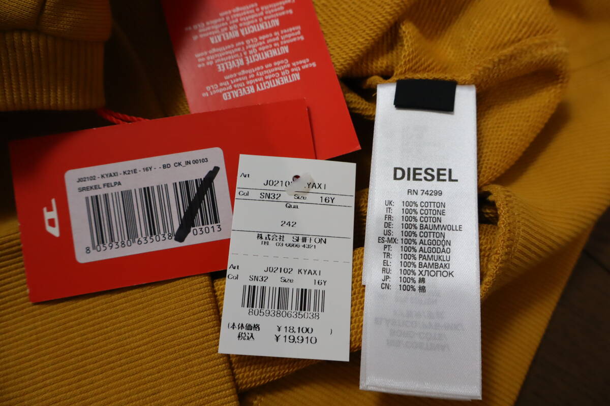 ☆DIESEL/ディーゼル☆未使用 ブランドロゴ クルーネックスウェット サイズ:16 Y 160cm~