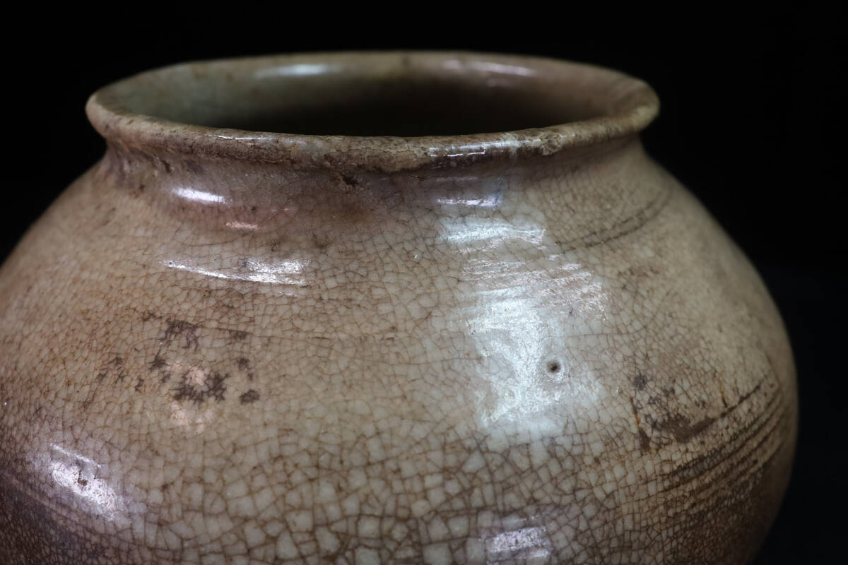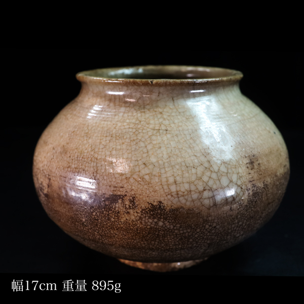 ◇雅◇ 朝鮮古美術 李朝 算盤形花入 壺 小壺 金沙里 幅17cm/895g 粉引 鶏龍山 刷毛目 象嵌 唐物 高麗 時代物 /HK.25.8 [M88.1] QO4