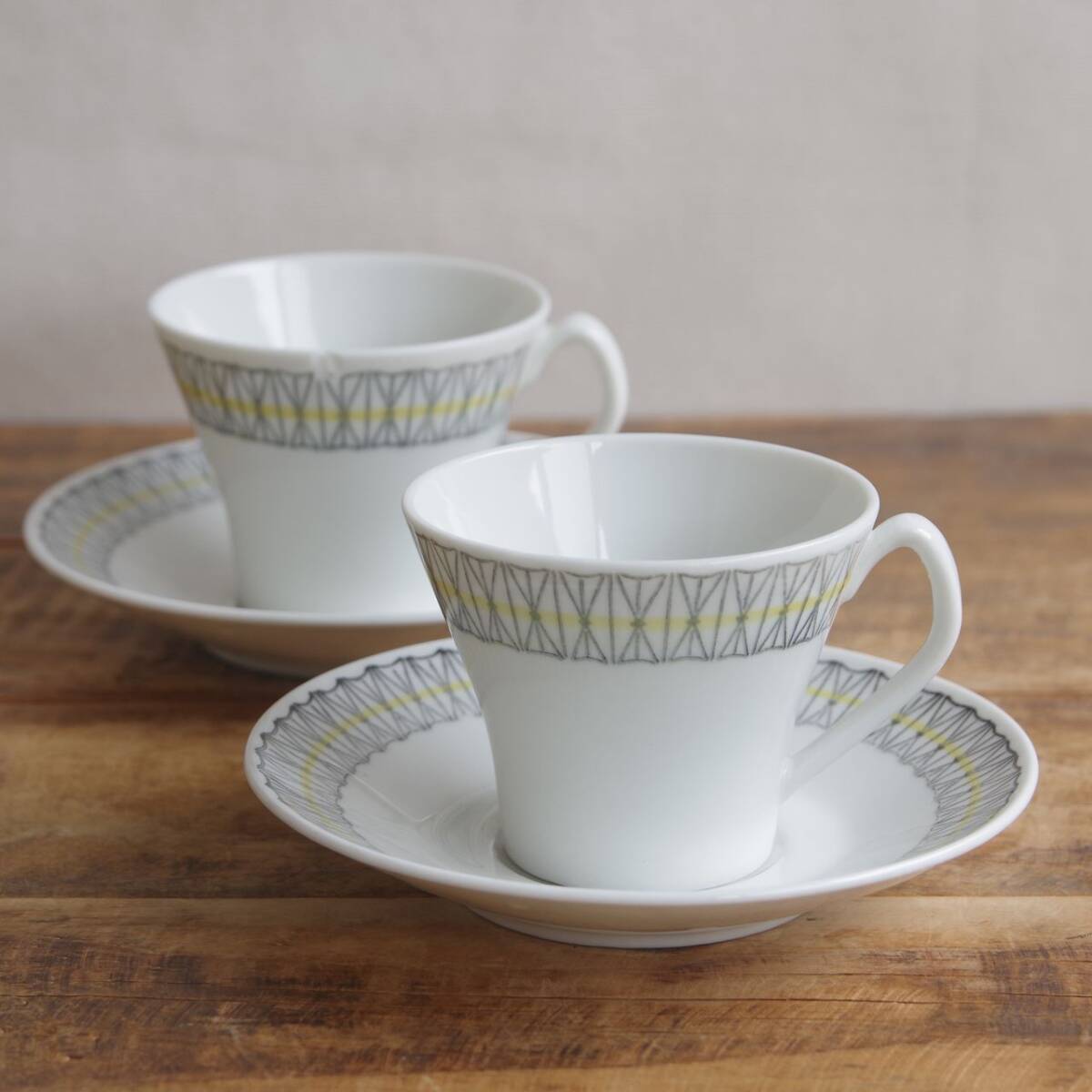【難あり】2客セット ウプサラエクビー ゲフレ クリス Upsala Ekeby Gefle Kryss コーヒーカップ&ソーサー 小さめ 北欧 ヴィンテージ 食器