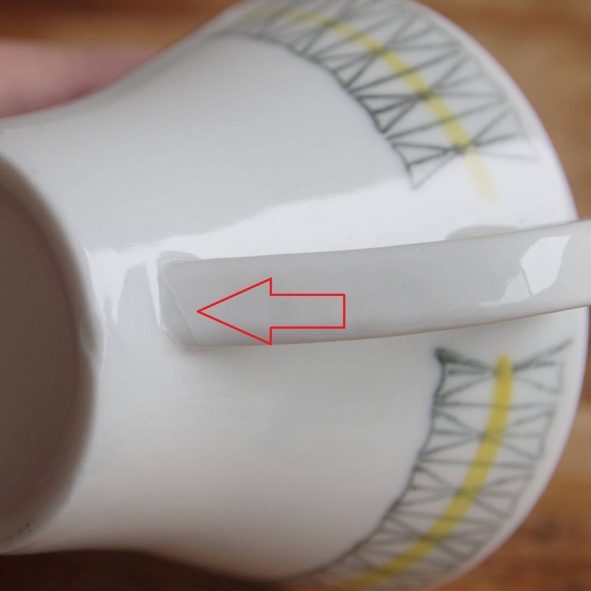 カップ2: 持ち手下の付け根部分にヒビが入っています。