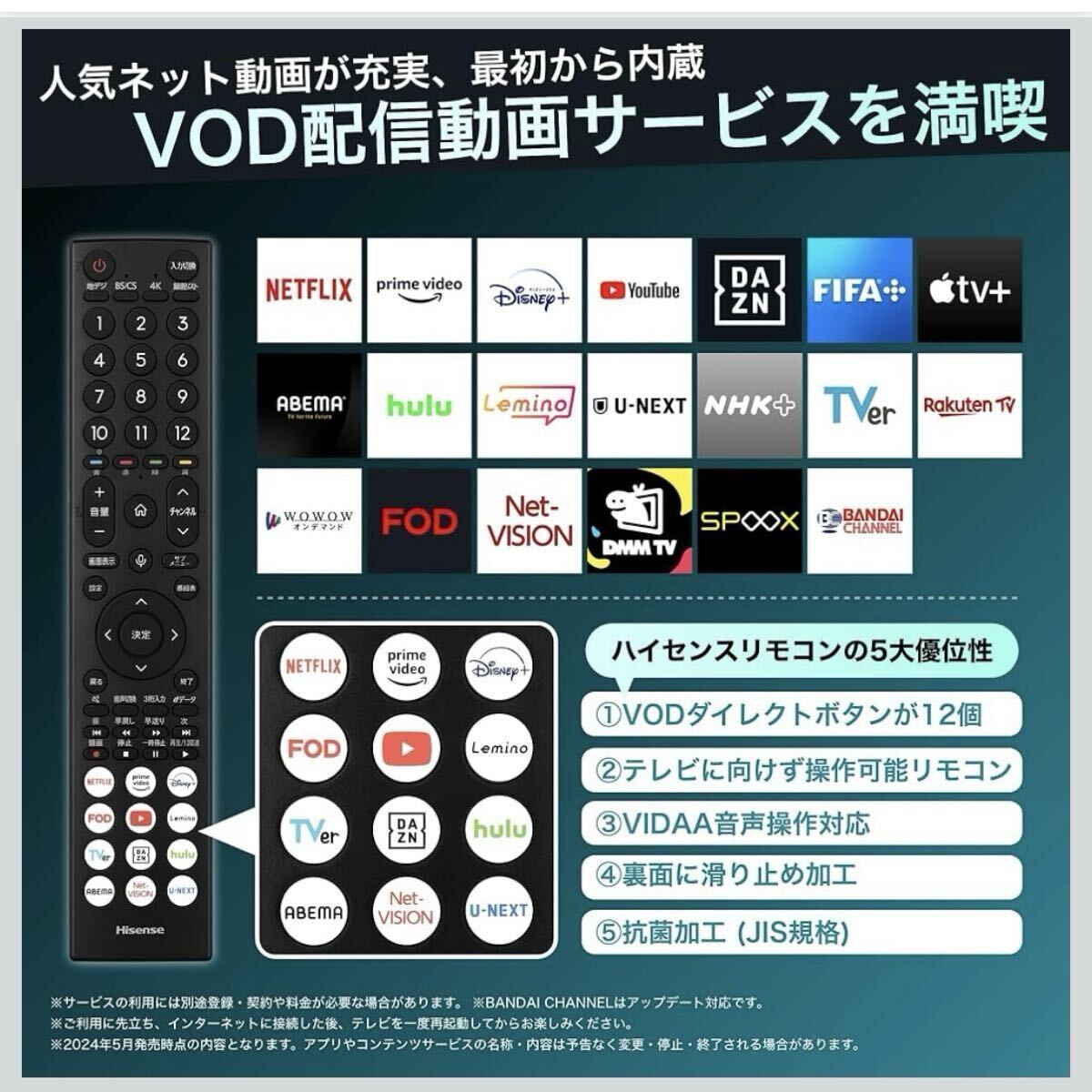 VODサービス:YouTube Amazonプライムビデオ Netflix Hulu ABEMA DAZN U-NEXT FODプレミアム