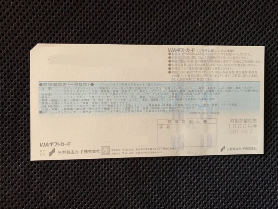 ★即決★VJAギフトカード5000円分(1000円券×5枚)★送料込★