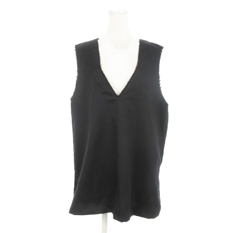 サマンサモスモス SM2 blue ベスト カットソー プルオーバー Vネック カットオフ オーバーサイズ F 黒 ブラック /AH3 レディース