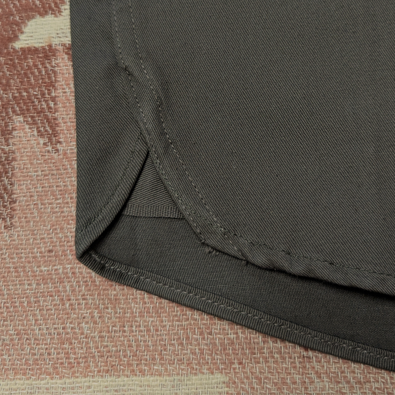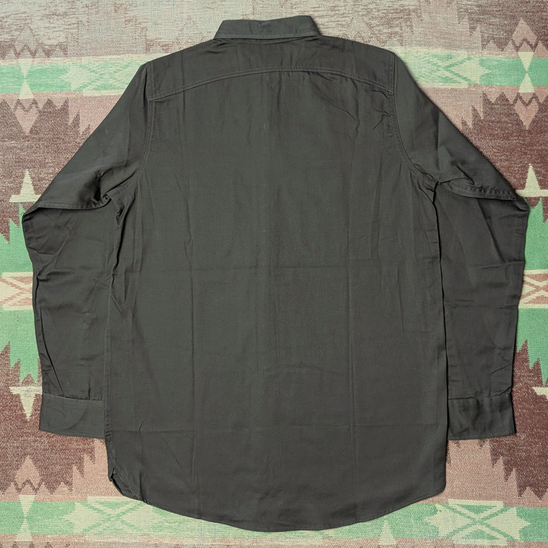 大活躍してくれそうなダークカラーのワークシャツ。よく見るグレーとは異なるカラーも好ポイントと思います。
