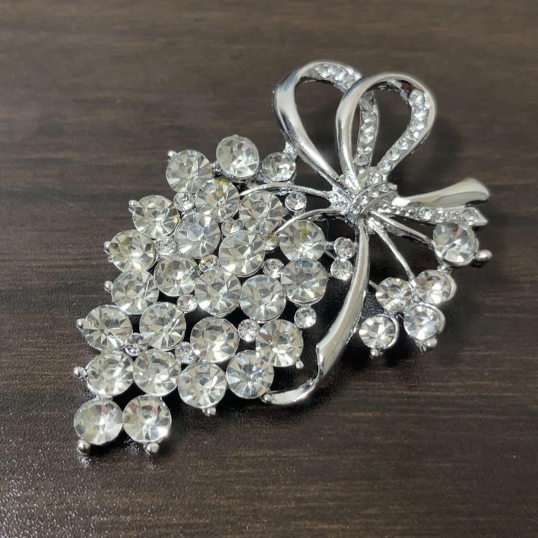 ブドウリボンブローチ クリスタル アンティーク