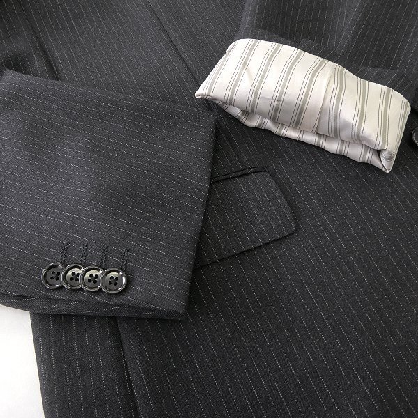 新品 未使用 紙タグあり BE10サイズ(幅広体型の5Lサイズ相当) 胸囲108 胴囲104 身長195 ※商品に記載されたサイズ・寸法です※ 【ジャケット】 肩幅51cm 身幅61cm 袖丈68cm 着丈82cm 【スラックス】 ウエスト105cm(内回り1周) 股上31cm 股下100cm 裾幅24.5cm 腿幅34.5cm(股下10cm部分) 【上衣】 表地:毛99% ポリエステル1% (ポリエステル1%は装飾糸として使用) 胴裏:キュプラ55% ポリエステル45% 袖裏上部(ストレッチ部分):ポリエステル65% 複合繊維(ポリエステル)35% 【下衣】 表地:毛99% ポリエステル1% (ポリエステル1%は装飾糸として使用) 裏地:ポリエステル100% ダークグレー |