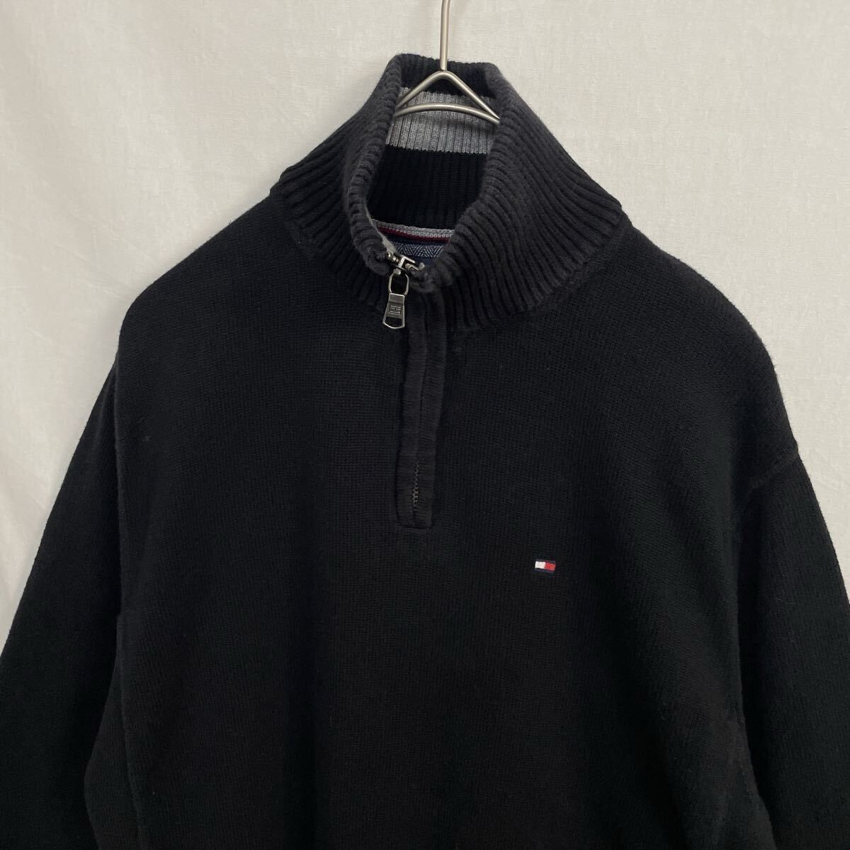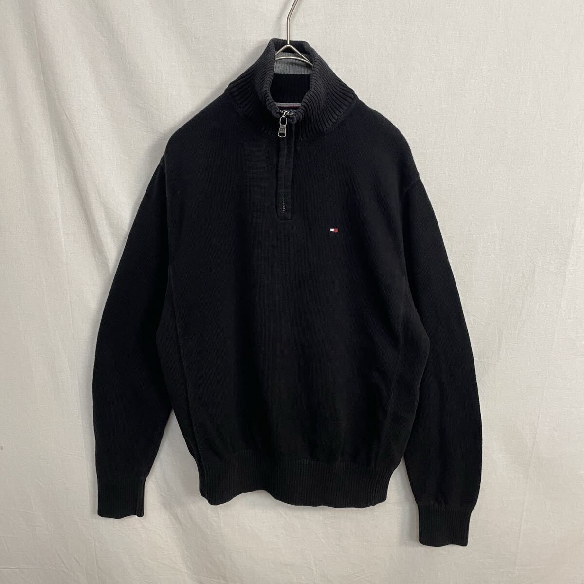 TOMMY HILFIGER ハーフジップニットセーター 古着 XSサイズ ブラック