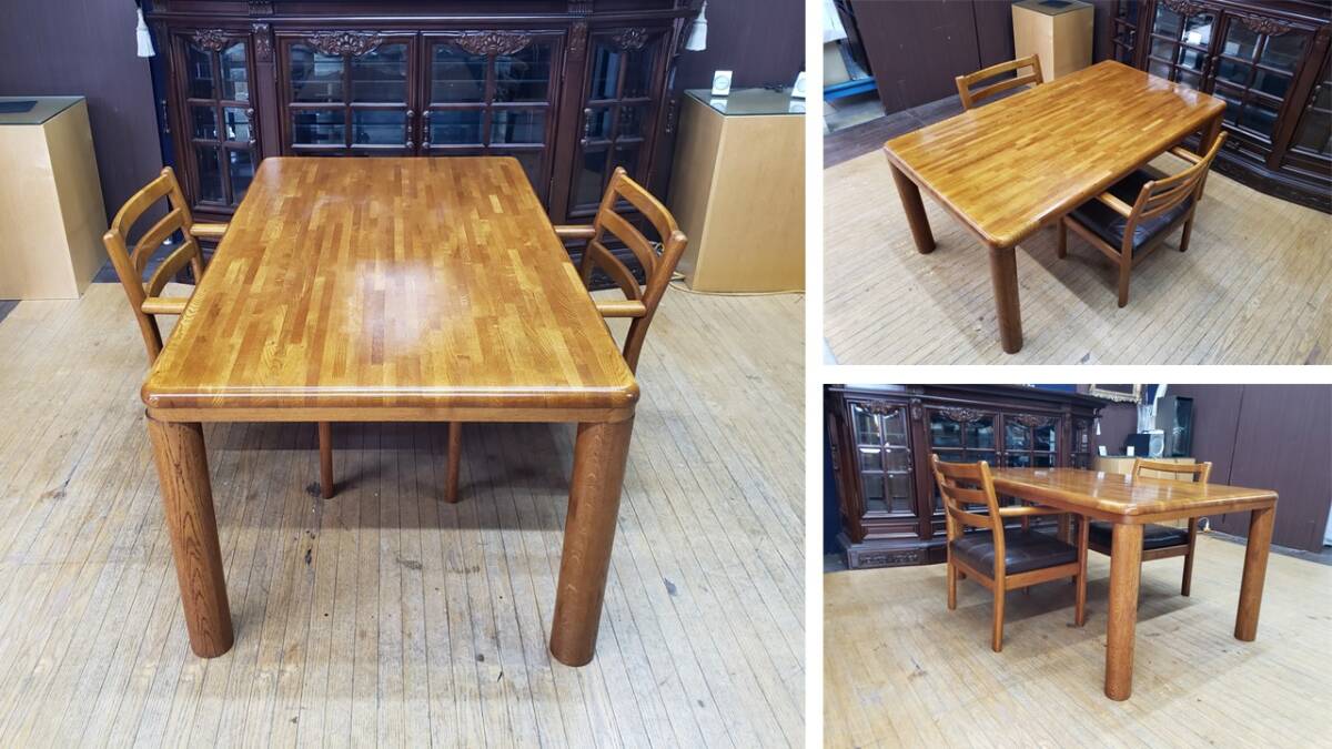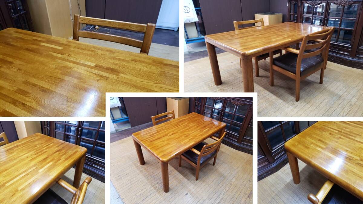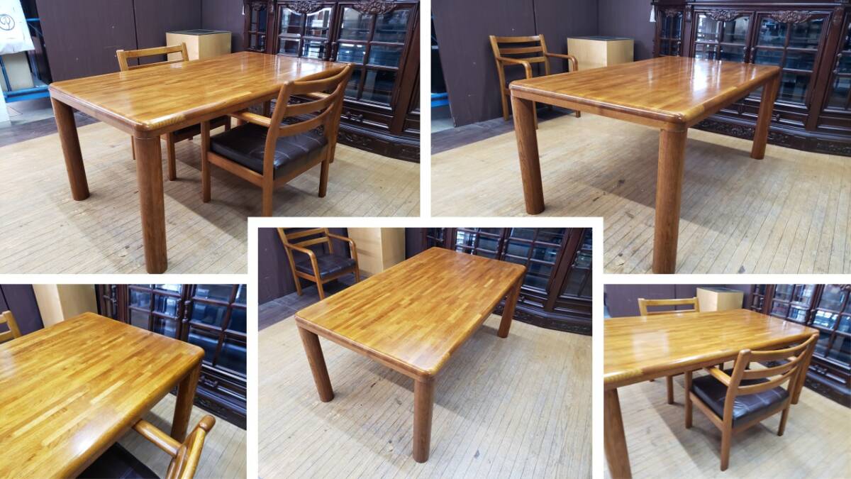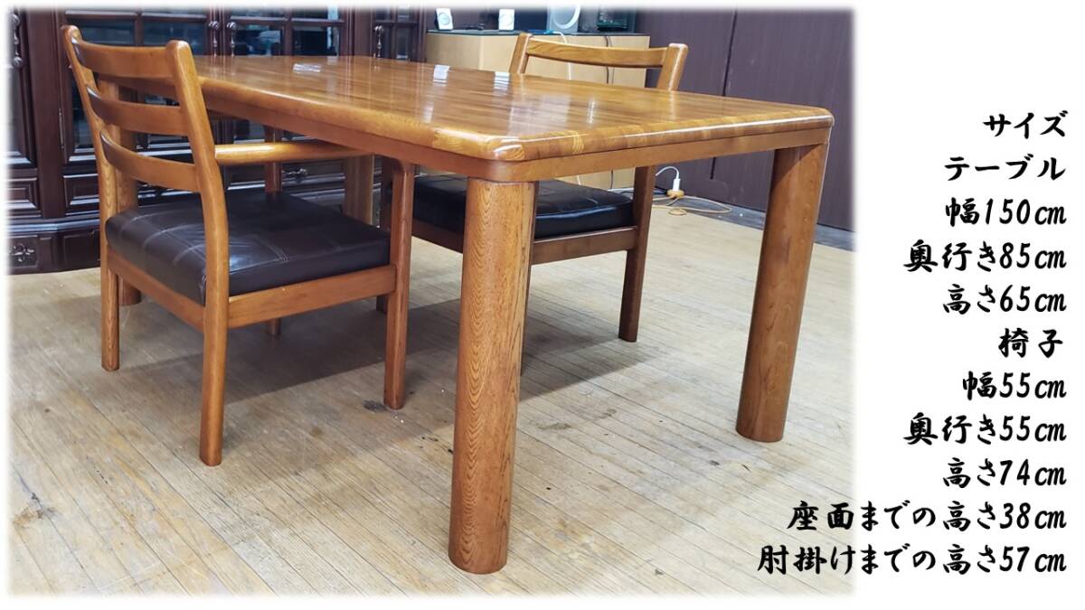 【状態】全体的に多少の使用感はありますが機能的には問題ありません。座面は本革です。USEDとなります。画像をご覧になる環境により実際の色と若干の違いがあるかも知れませんがご了承下さい。【サイズ】テーブル幅150㎝×奥行85㎝×高さ65㎝椅子幅55㎝×奥行55㎝×高さ74㎝座面までの高さ38㎝肘掛けまでの高さ57㎝
