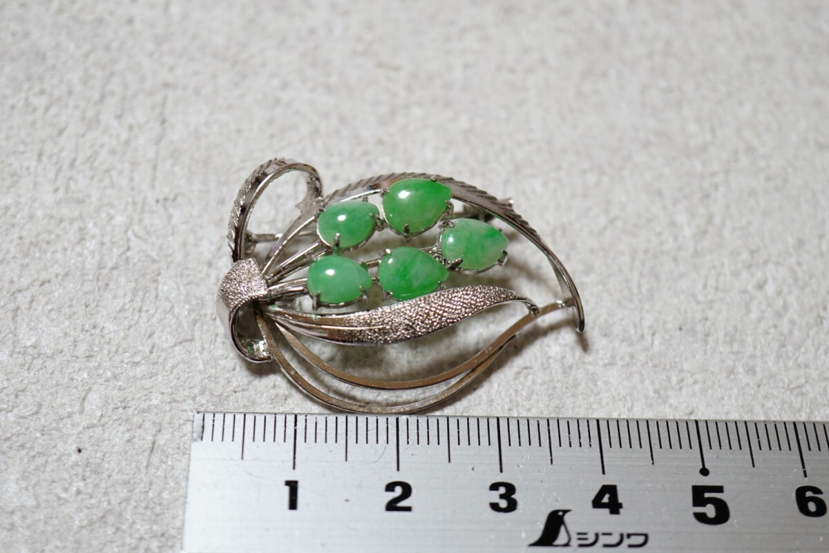 1175 天然石 緑石 ブローチ ヴィンテージ アクセサリー SILVER刻印 宝石 色石 カラーストーン 装飾品