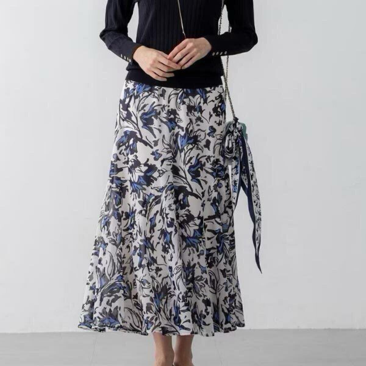 存在感のある華やかで上品な印象のデザインプリントスカート